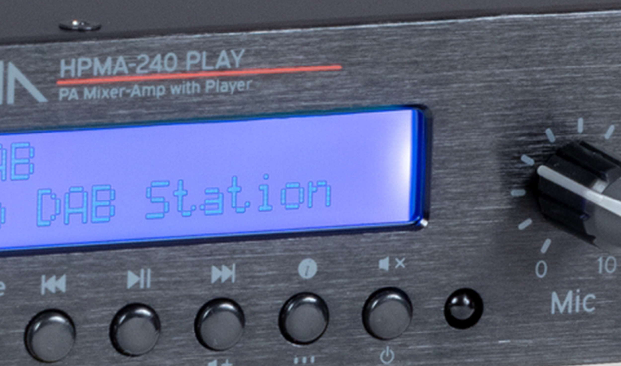 Collapse textIn half a 19" rack unit, the HPMA series offers a player with FM, DAB+, USB, Bluetooth and amplifiers for low or high-impedance systems from 30W to 240W.