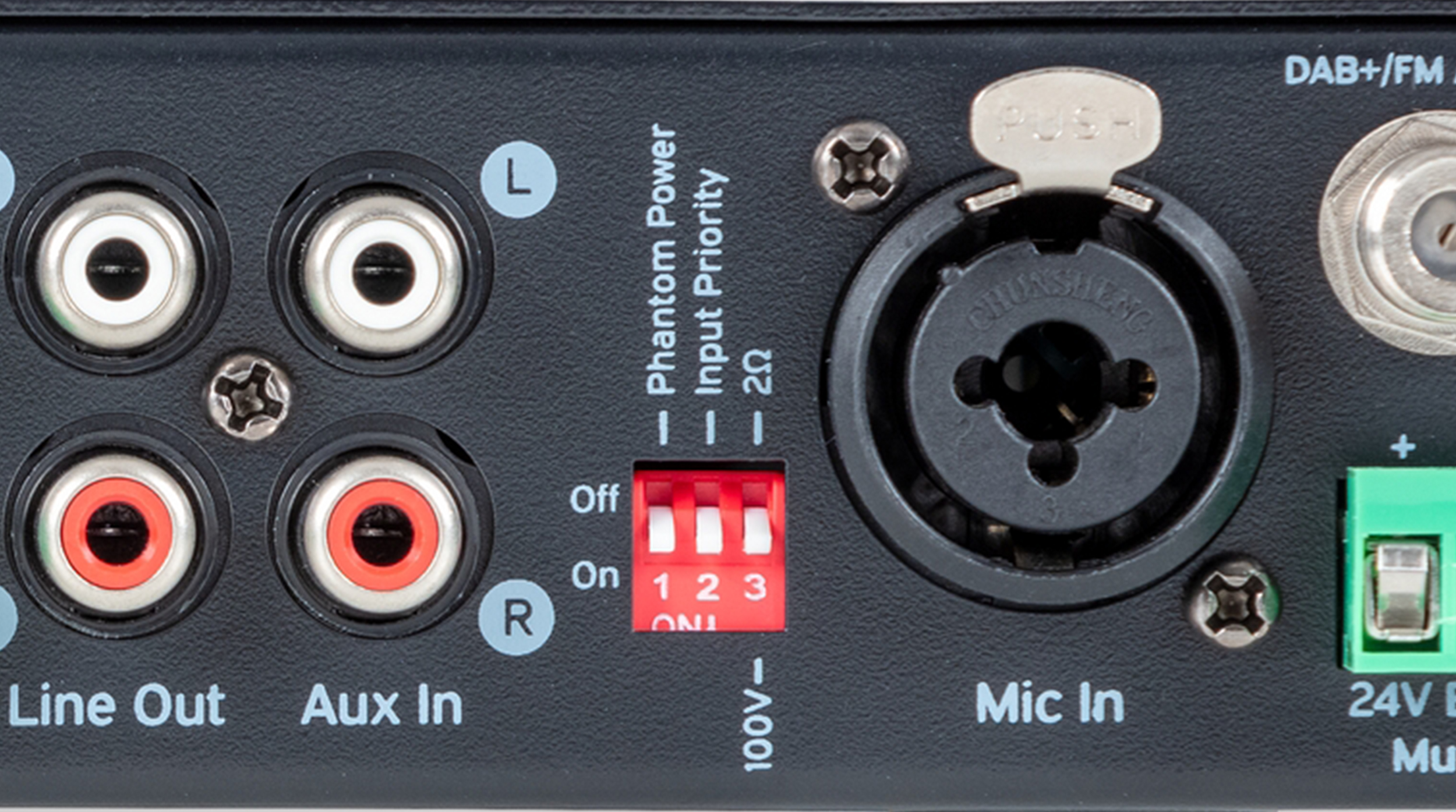 Whether you need Low Impedance (down to 4ohm) or Constant Voltage (70/100V) speakers, HPMA-240 PLAY is equipped with a 240W RMS Class-D amplifier. You have to select on the rear panel the mode corresponding to the speakers to be used and that's it.