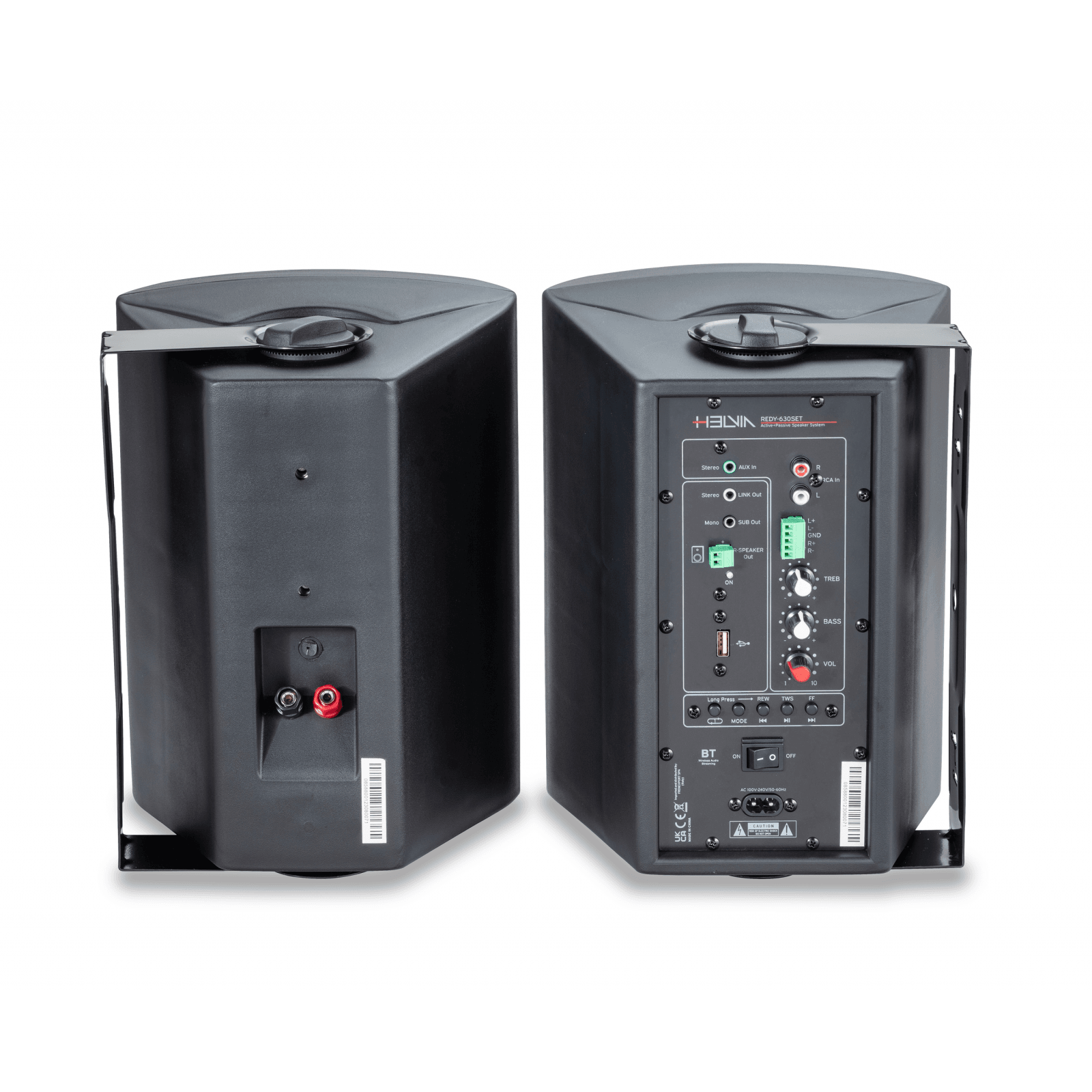 The system consists of a pair of 2-way ported speakers with 6.5" woofer and 0.5" tweeter. One of the speakers is active and features a 30+30W RMS (100+100W Peak Power) Class-D amplifier and a media player with USB input, Line Stereo input and BT streaming. The other speaker is passive and is connected to the first speaker to create a perfect stereophonic sound system.