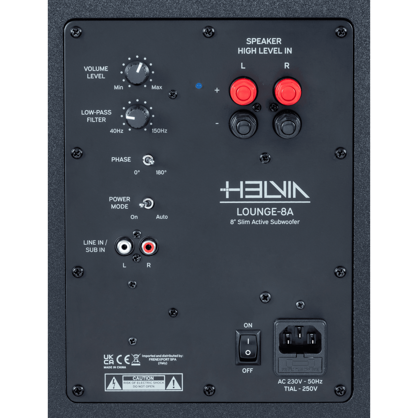 Collapse textHELVIA Lounge subwoofers feature custom high-excursion woofers. The bass-reflex architecture cabinets are tuned to provide a linear and dynamic response even around 35Hz with power up to 100W. The slim design facilitates placement even in spaces that are not normally used, and allow you to enjoy your music and home cinema experiences like never before.