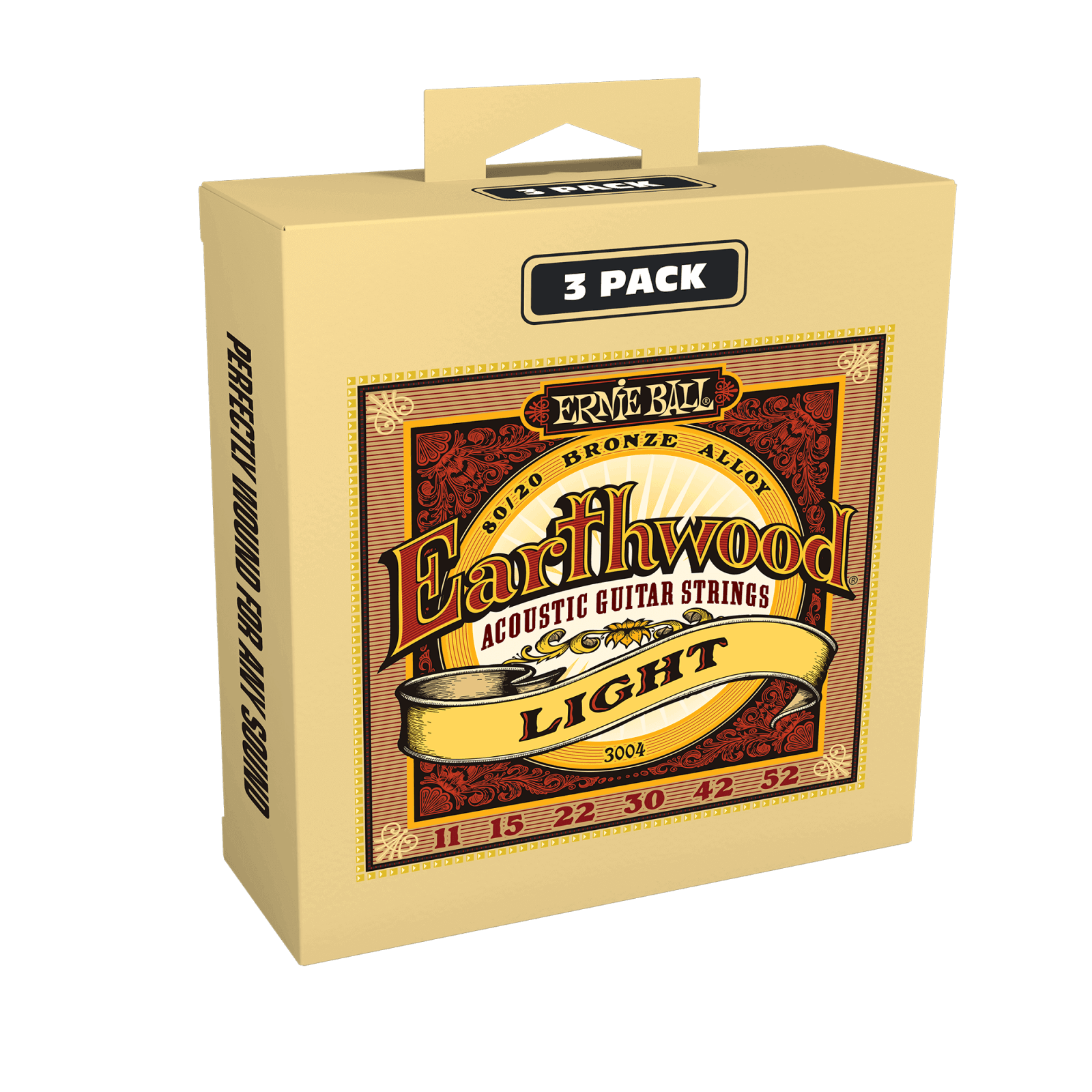 Now available in convenient three-set packs. Ernie Ball Earthwood 80/20 Bronze Acoustic Guitar Strings are made from 80% copper, 20% zinc wire wrapped around hex shaped brass plated steel core wire. These acoustic guitar strings provide a crisp, ringing sound with pleasing overtones.