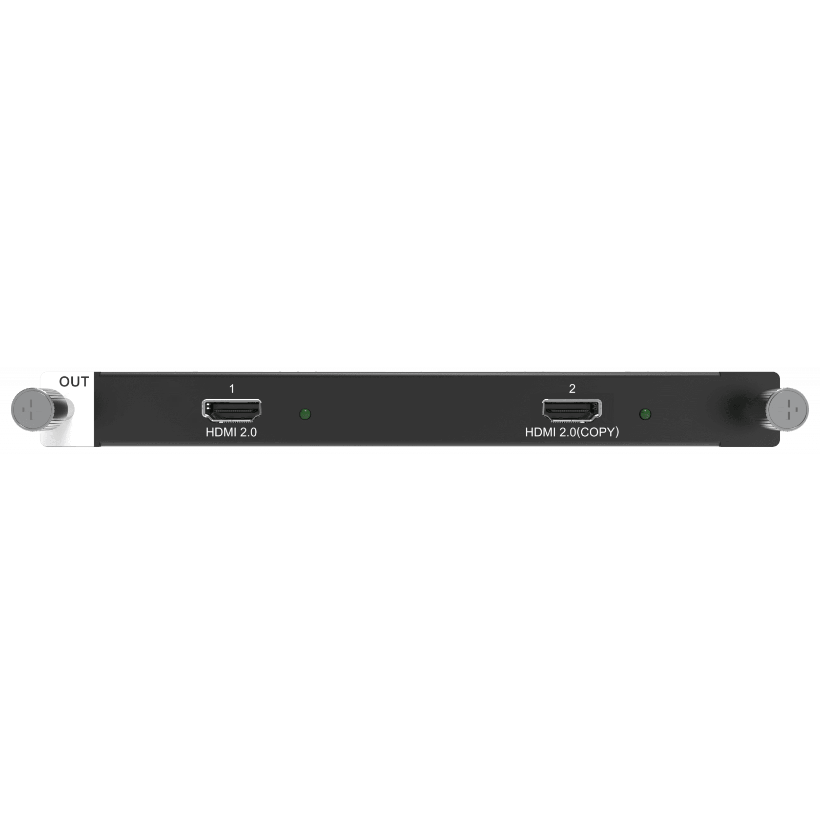 The H Series Output Card 1xHDMI2.0 is an output card for the H Series H2/H5/H9/H15 Video Wall Splicers, and feature 2 HDMI 2.0 connectors (HDMI connector 2 copies the output on connector 1). The output is HDCP 2.2 compliant, and supports the maximum resolution of 8192x1080@60Hz / 4096×2160@60Hz. Custom resolutions go up to 8192×1146@60Hz for width, and 1092×7680@60Hz for height. The output card supports 8-bit or 10-bit output, as well as 144Hz output.