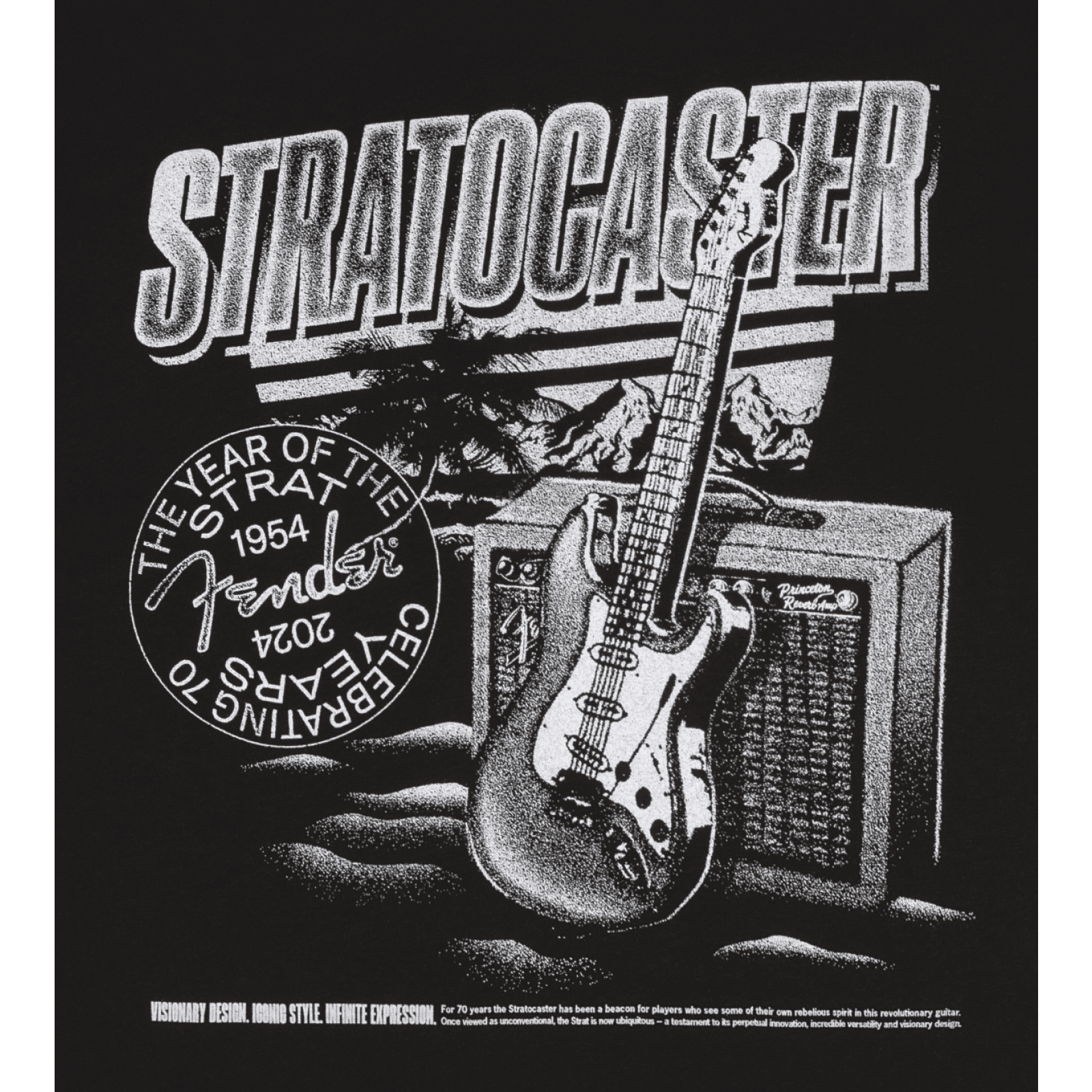 The 70th anniversary of the Fender Stratocaster™ is quite significant! First introduced in 1954, the Stratocaster™ has become an iconic symbol in the world of electric guitars, shaping the sound of countless musicians across genres and generations. In celebration of this milestone, Fender is introducing the 70th anniversary Stratocaster™ T-shirt. Just like your Stratocaster™ guitar the T-shirt will be a favorite among Fender players and fans worldwide. Collapse text