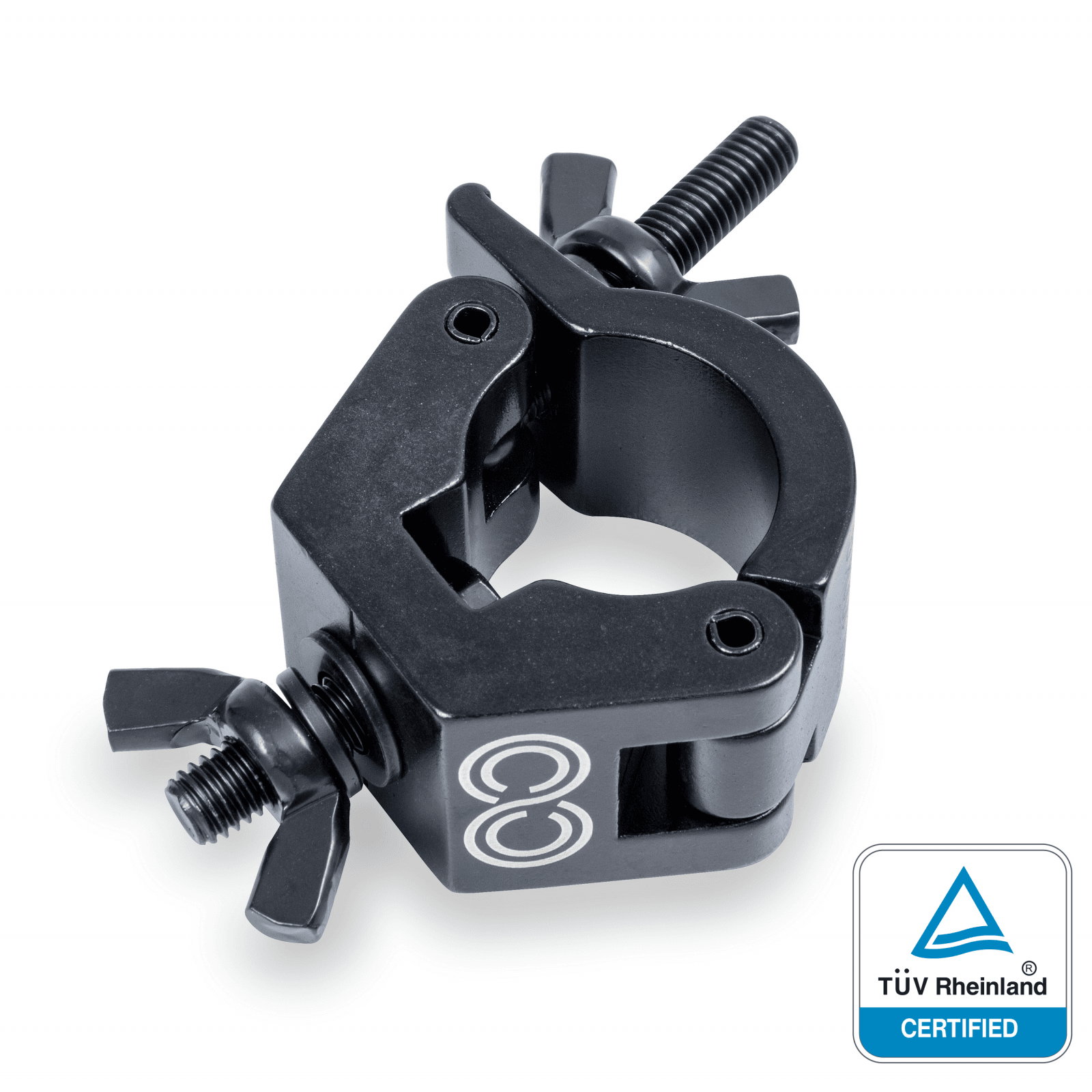 Clamp for trusses with sections between 28 and 34 mm. Maximum load 100 kg. Black
