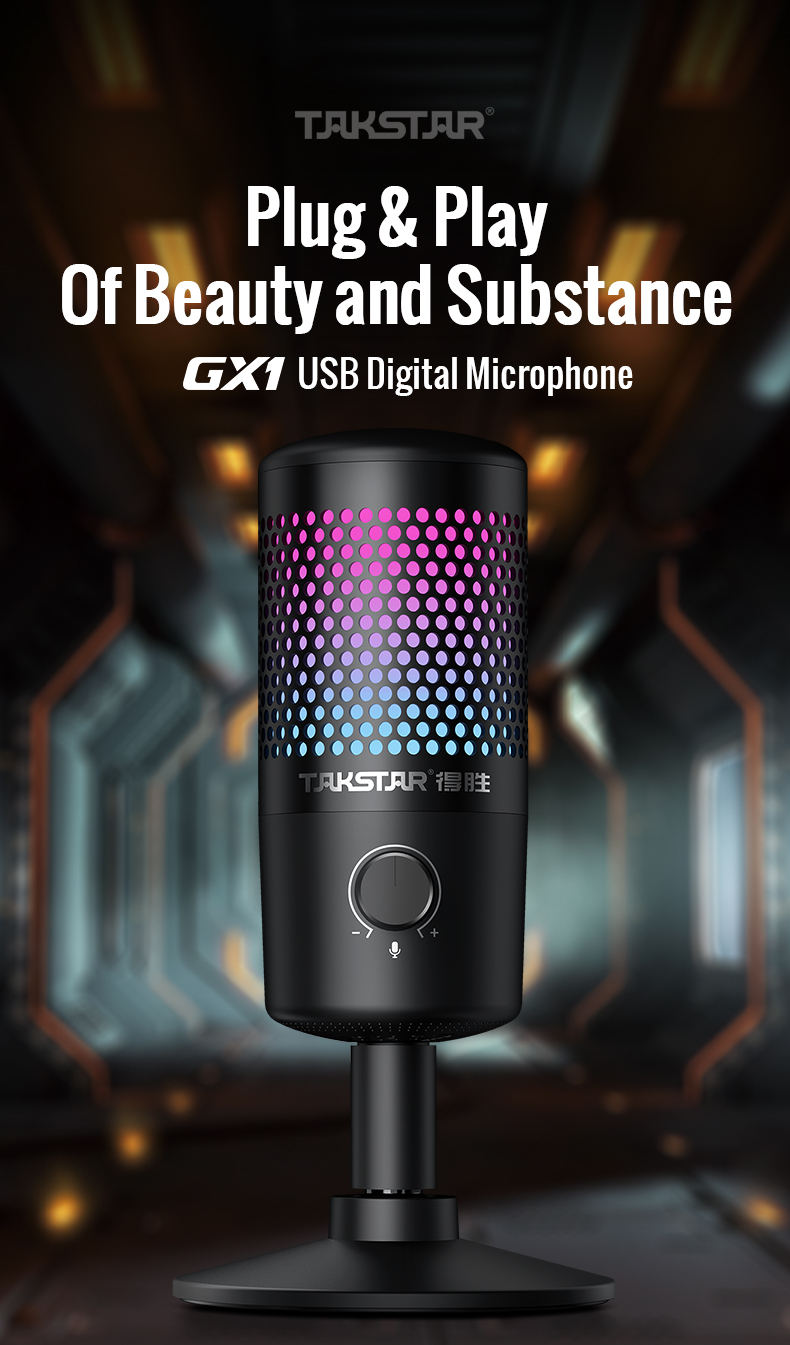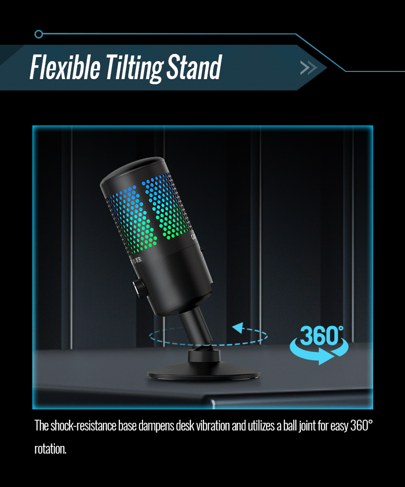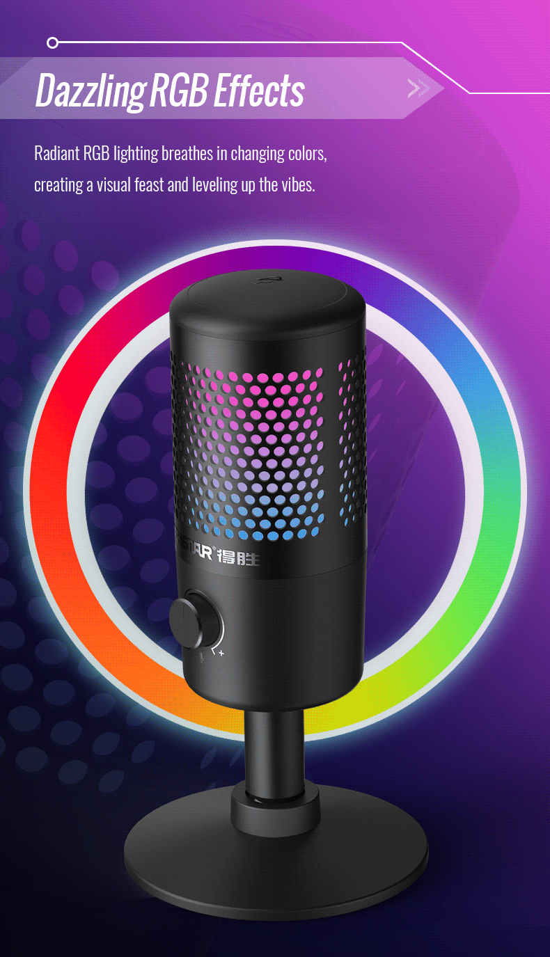 USB Digital Microphone with LED RGB effects. Taylored for virtual lectruring, courseware recording, online chatting and gaming live stream.