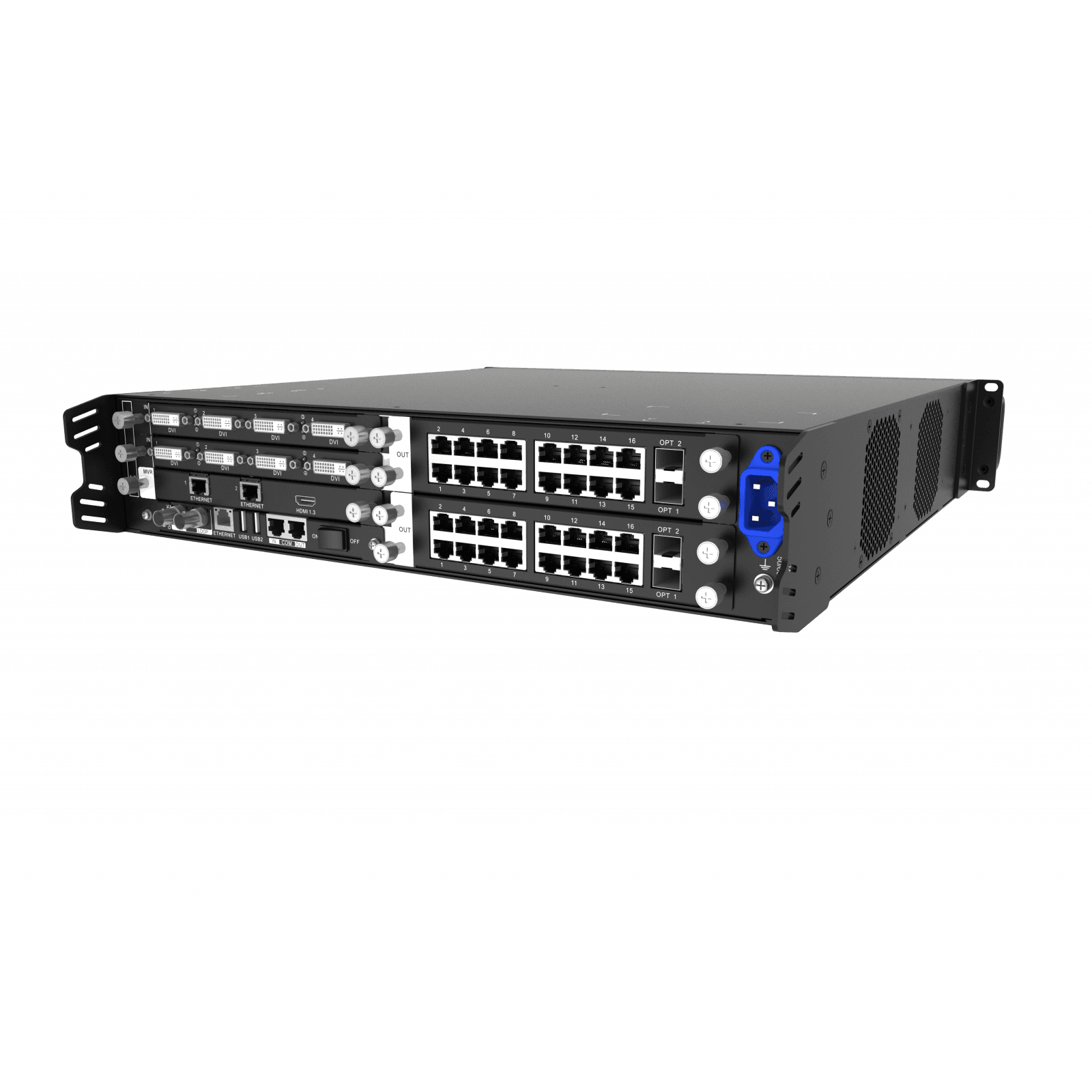 The H2 can work as splicing processors that integrate both video processing and video control capabilities, or work as pure splicing processors. The whole unit adopts a modular and plug-in design, and allows for flexible configuration and hot swapping of input and output cards (all input/output cards must be ordered separately).