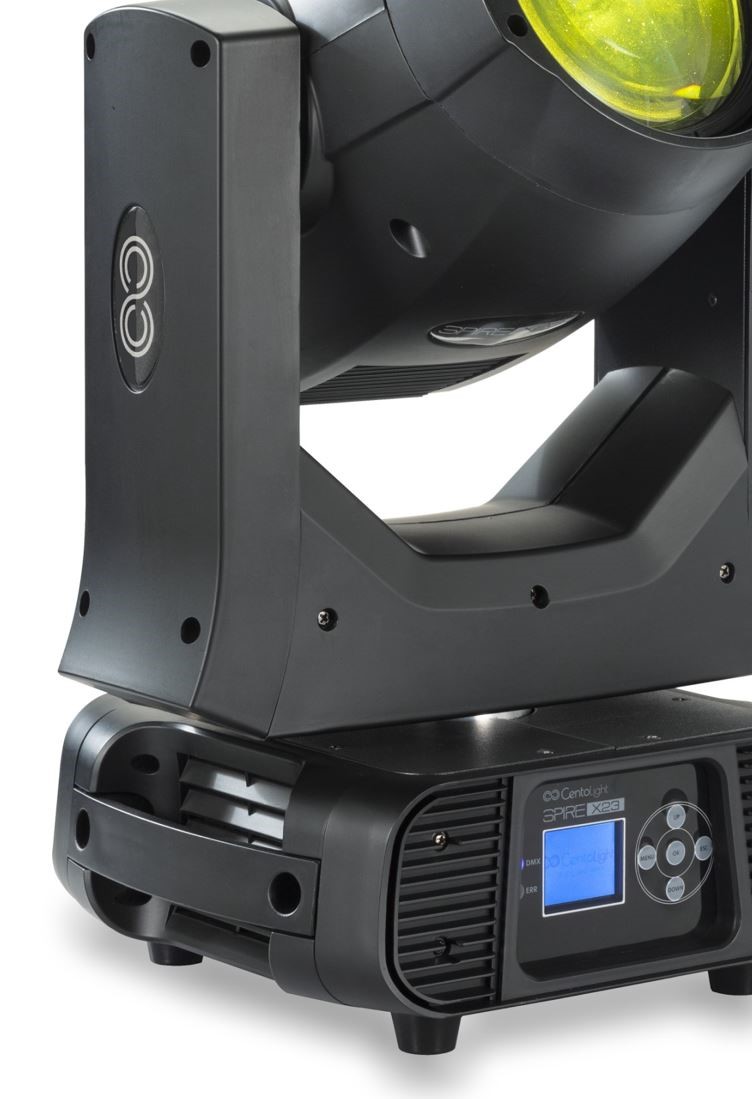 The Spire X23 is a stylish moving head beam in a very compact and lightweight housing. It delivers high light output and even coverage field. It features an High quality 230W Lamp. The lamp equips with the reflector built-in, providing perfect lamp alignment. The moving head features ultra sharp beam effect with low consumption. The fixture is integrated with a full complement of professional characteristics including a static gobo wheel, color wheel, 8-Facet prism, frost filter, motorized linear focus, variable speed shutter/strobe, linear dimmer, color time and gobo time controllable. The fixture supports DMX, RDM (Remote Device Management).
