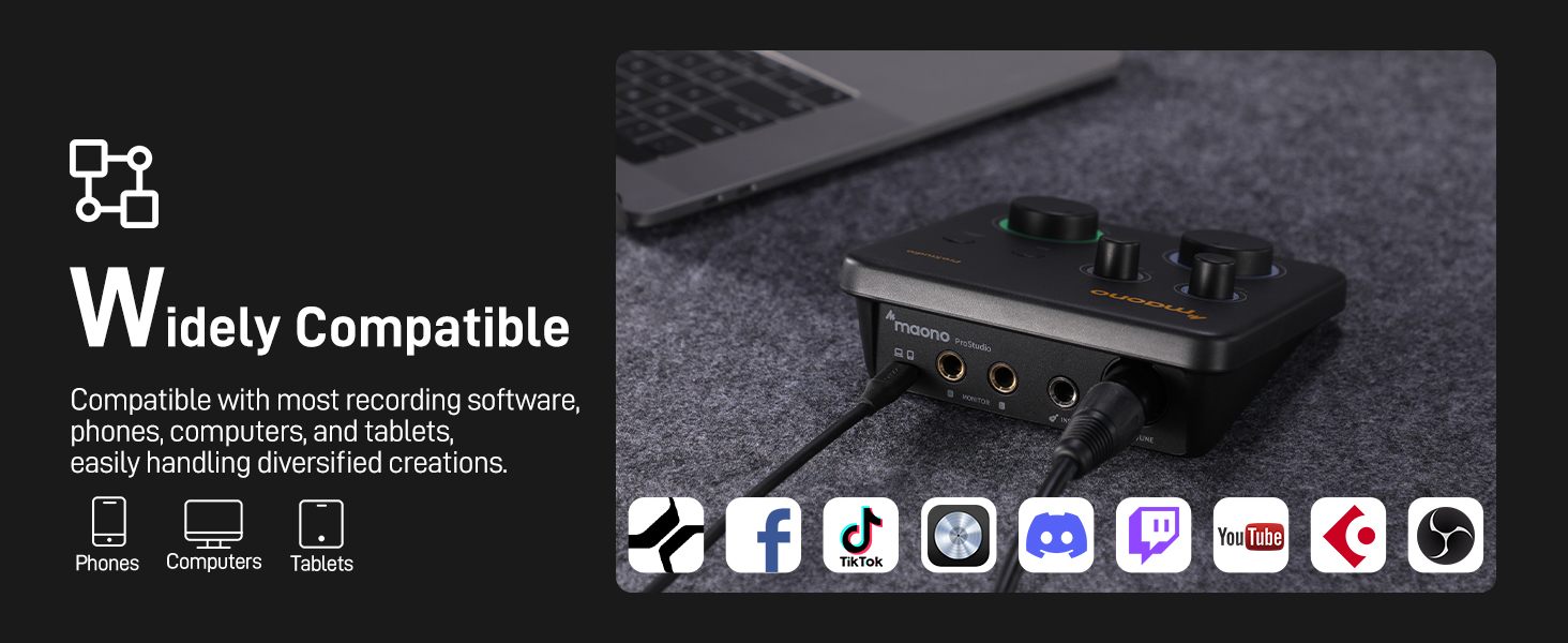 PS22 Lite is compatible with most recording software, phones, computers and tablets, easily handles diversified creations