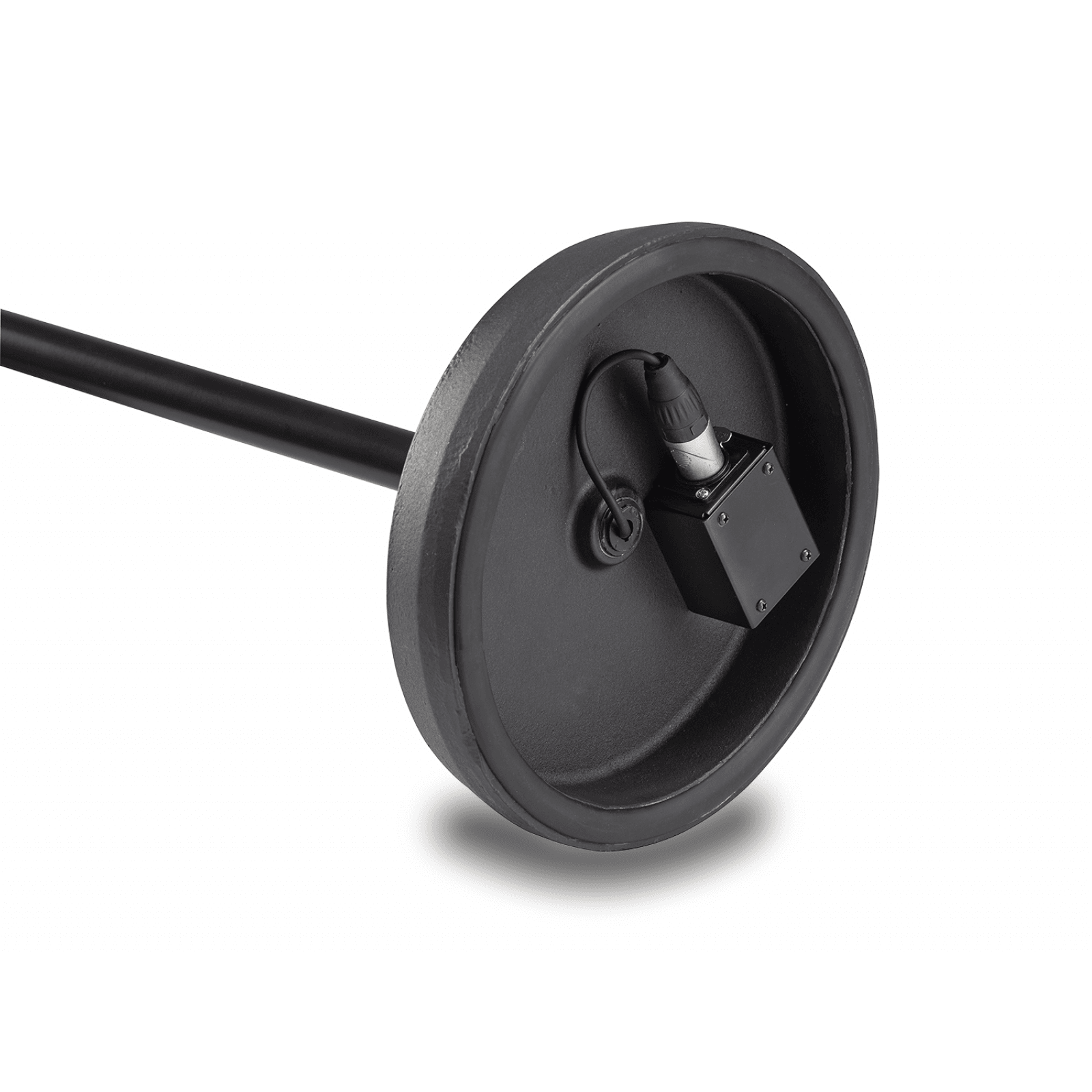 The stand is equipped with a 3-pole XLR socket integrated in the upper tube to allow direct connection of a gooseneck type microphone. Using a flexible extension cable with XLR connectors (eg Soundsation GKXLR-16-BK) as an accessory, the stand becomes compatible with all types of microphone.