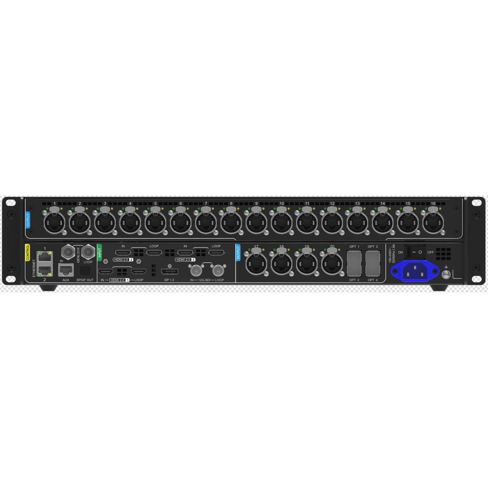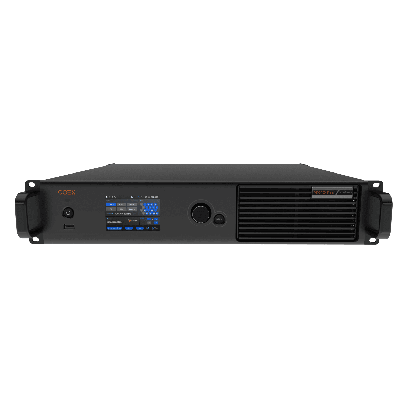 MX40 Pro is the flagship 4K LED display controller from Novastar. This controller integrates video processing and control into one box and provides 20 Ethernet output ports, 4 10G optical ports, and several video input connectors ((HDMI 2.0, DP 1.2 and 12G-SDI).