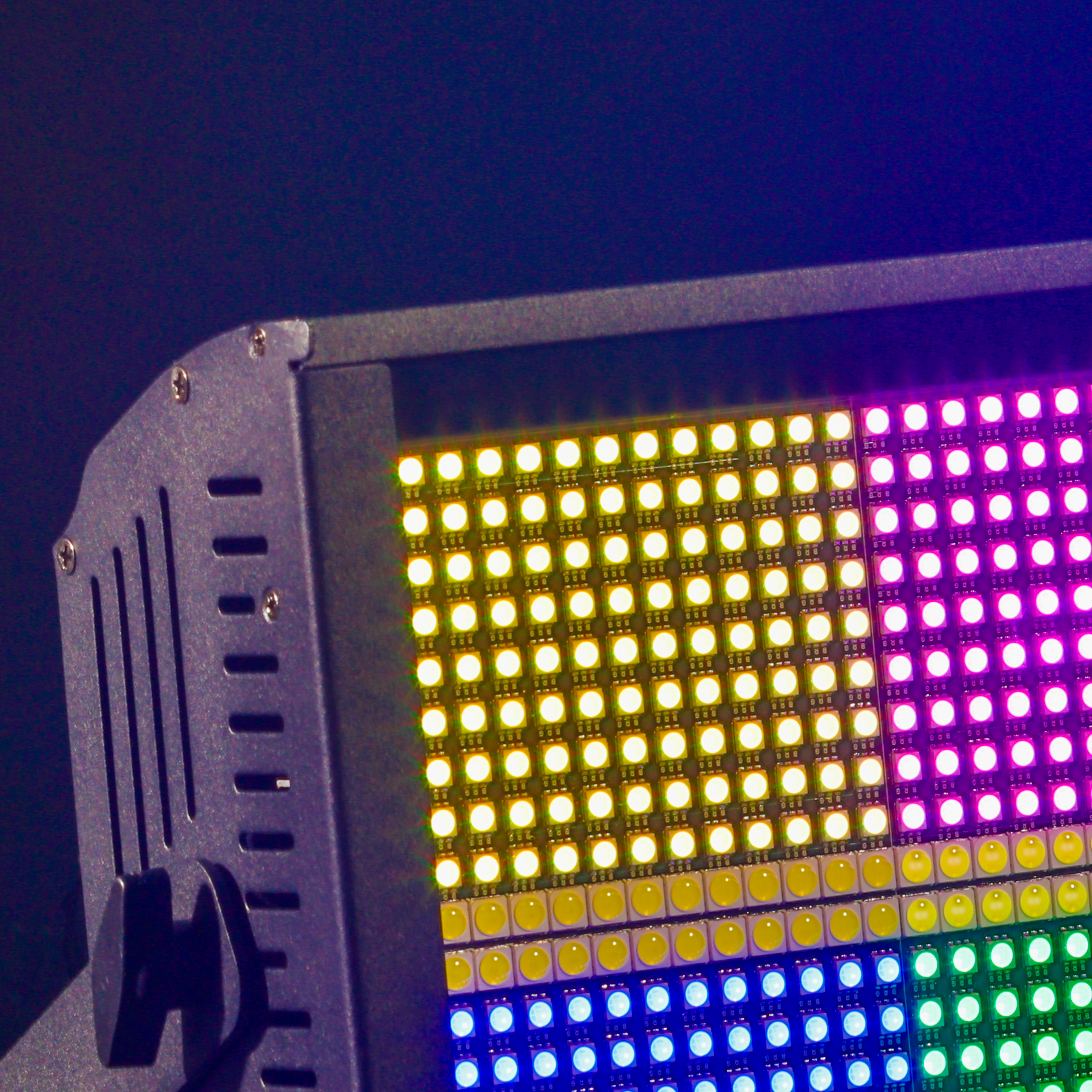 The LIGHTBLASTER S960 is the result of meticulous design, aiming to meet the rigorous requirements of contemporary environments. Its advanced light source, composed of 864 LED RGB 3in1 and 96 White LED, offers exceptional precision and control with the emission surface divided into 8+8 independent zones. Thanks to DMX control, it is possible to manage colors individually in each zone or simplify configurations for basic strobe and wash applications.