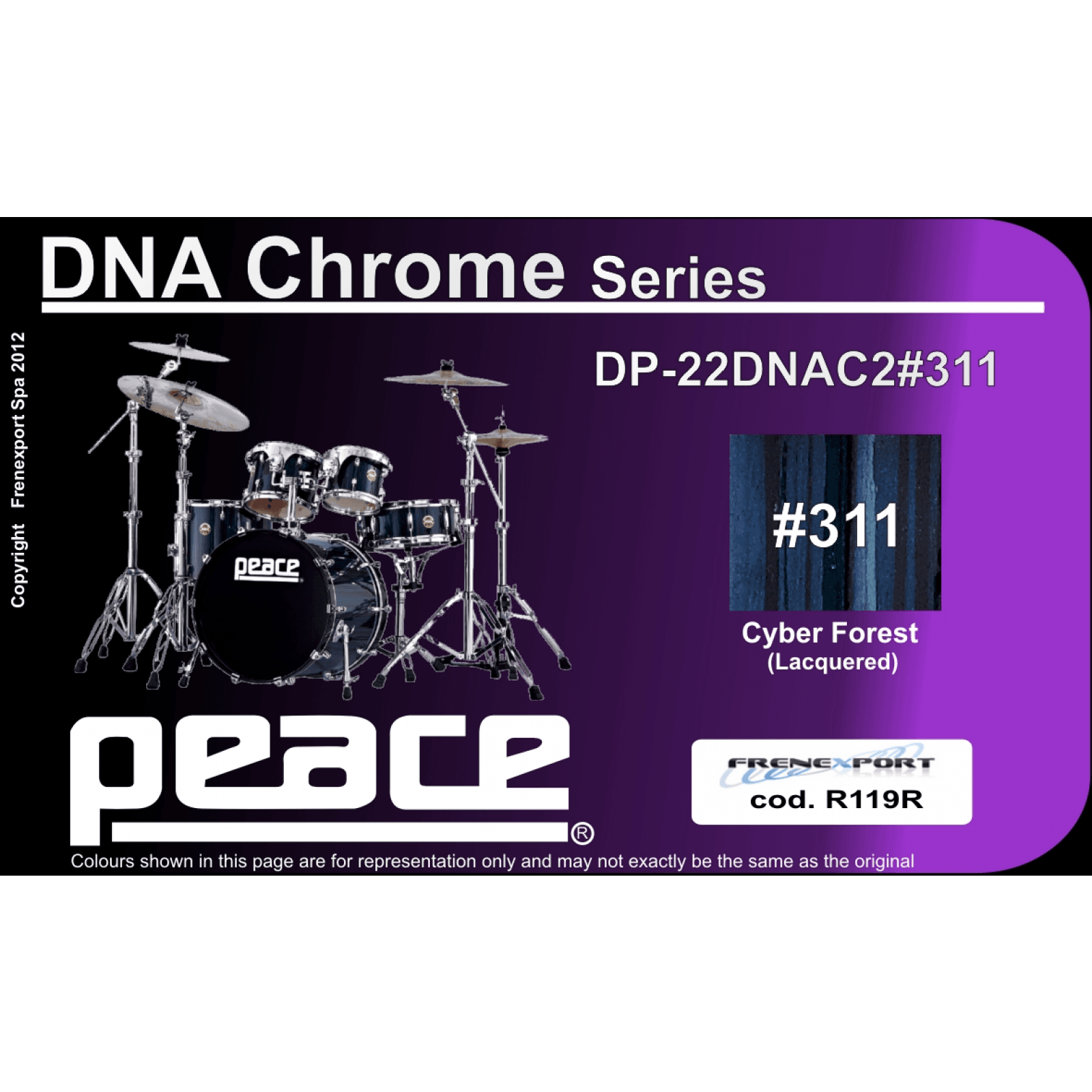 Peace’s top-of-the-line package kit, the DNA series resides at the crossroads of rugged and handsome, where professional quality meets affordability. A versatile kit designed to capture the quintessential modern drum set sound, the DNA series combines heavy duty series 800 hardware including both a straight and a boom stand, and 9-ply lacquered North American maple drums in a package that includes rims-mount toms, low-mass lugs, die-cast claws, and brass vents, among many stand-out features. The series is offered with chrome or black-trim hardware, and custom sizes and finishes are also available by special order. It ain’t broke, so we didn’t fix it. Peace’s DNA series has been a preferred choice by artists and endorsers for years, and it’s been heralded as “a pro-level kit at a very affordable price” by DRUM! Magazine. Shown in one of Peace’s new finishes, black castle, a three color sparkle lacquer finish with a triple sparkle overlay belt that explodes chards of color under stage lighting. Collapse text