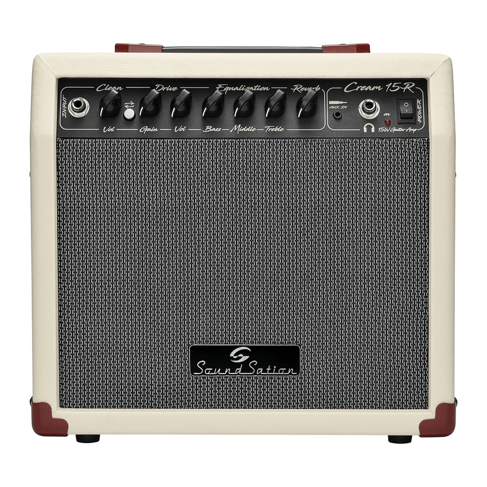 SOUNDSATION presents its new CREAM series, a new array of solid state amps bringing you that unforgettable vintage feel and tone. Available in 3 versions (10W, 15W, 30W) with different features and specifications. Cream-15R is the intermediate combo of the series: compact and light, featuring 2 channels, reverb and phone out for silent practicing, is the perfect choice for beginners and for advanced players who need a vintage style and well equipped 15W amp within reach. Collapse text