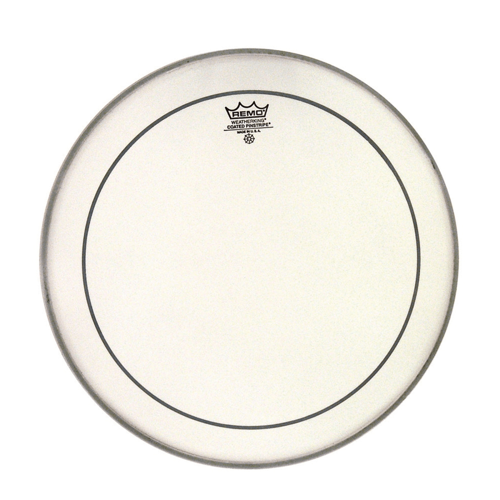 The coated drumhead is slightly warmer than clear heads. They’re known for their bright warm tones, resonance, and sustain. Coated heads are best known as batter and resonant heads warming up the sound of tom-toms and bass drums.Coated Pinstripe®'s quick decay makes them ideal heads for the “fat” sounds of Pop, Rock and R&B and for those who want a low pitched sound with warm attack and response characteristics.The Coated Pinstripe® heads are made with two 7 mil Mylar® plys with a measured layer of a ring reducing agent applied between them at the outer edge of their trademark stripe to dampen high frequency overtones for warmer resonance. Collapse text