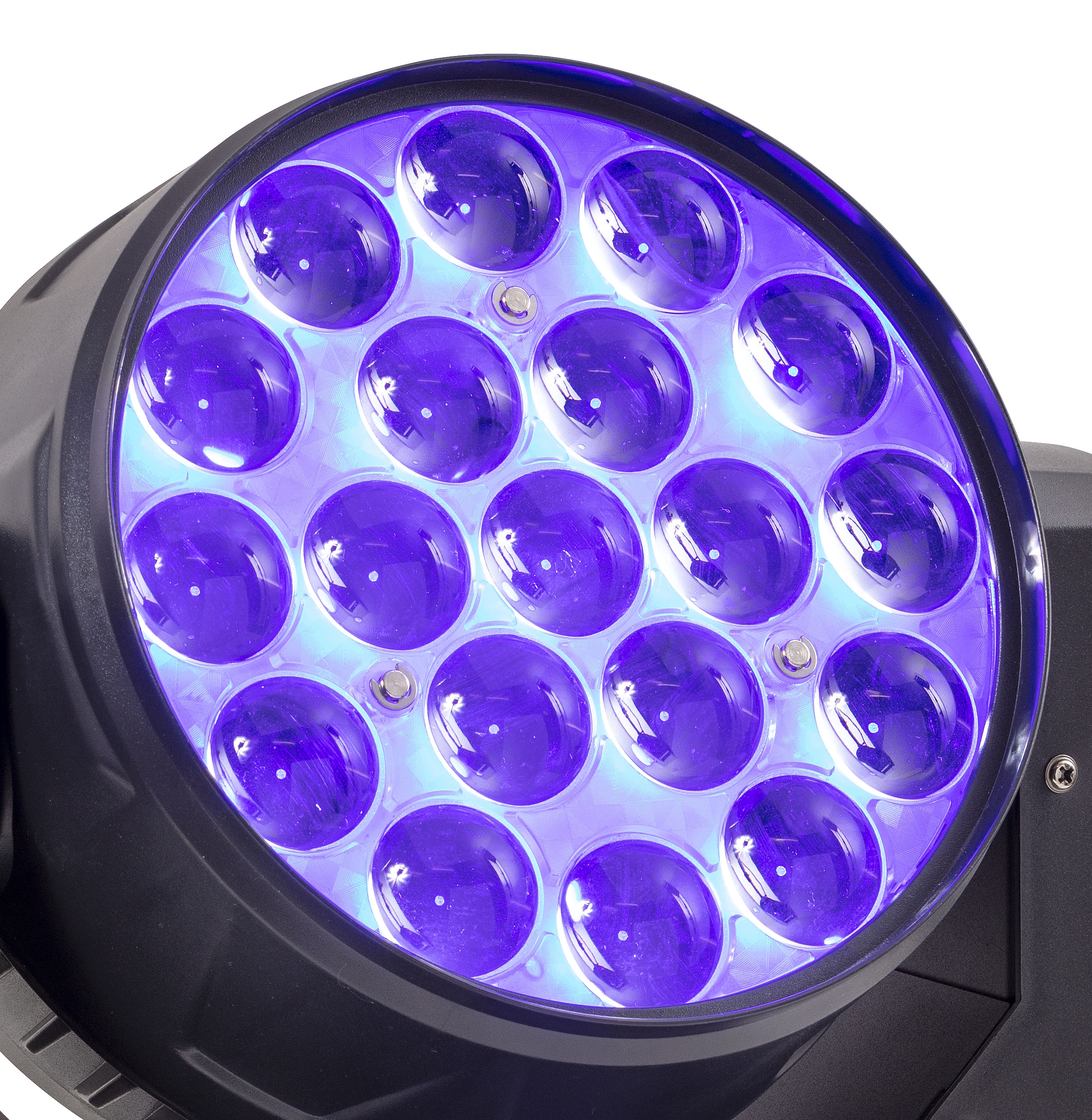The THESIS series offers a wash-light moving head with, 19 powerful and reliable 15W RGBW LEDs. They represent a valid alternative to normal discharge lamps with all the benefits of LED technology: low consumption, longer life, lower temperature dissipation. The light beam ranges from 10° to 60°, thanks to the ZOOM function controlled by high quality motors, which give an extremely soft and silent adjustment.