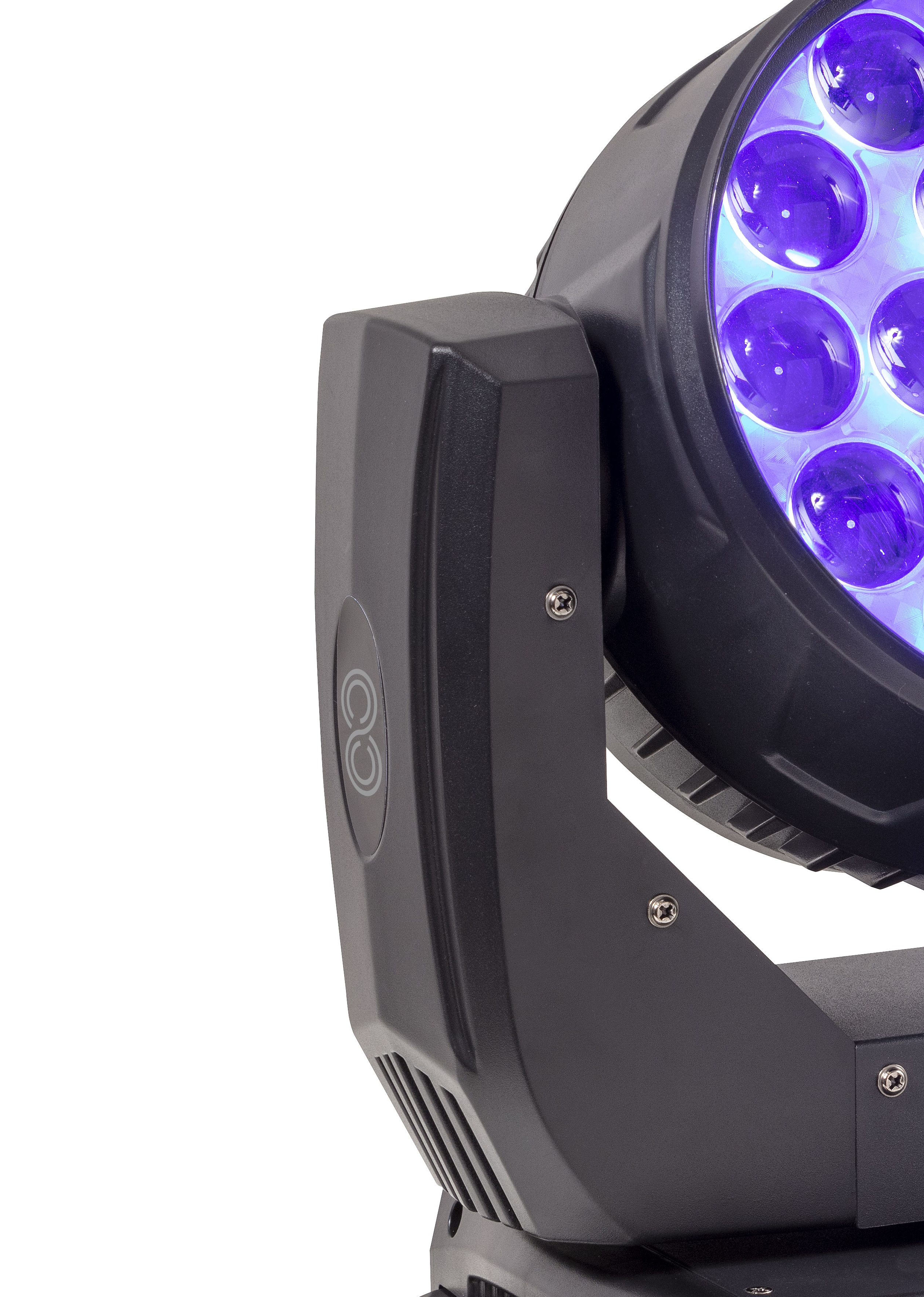Particular attention is paid to precision and noise of mechanical movements. PAN and TILT are equipped with high quality motors and 16-bit control. The ZOOM is also managed by high quality motors, to minimize skating effect and vibrations. The electronic dimmer is accurate and soft. Fan speed is calibrated in a way that keeps internal temperature from rising and fixture from overheating, ensuring the right balance between noise, safety and durability of the LED chips.