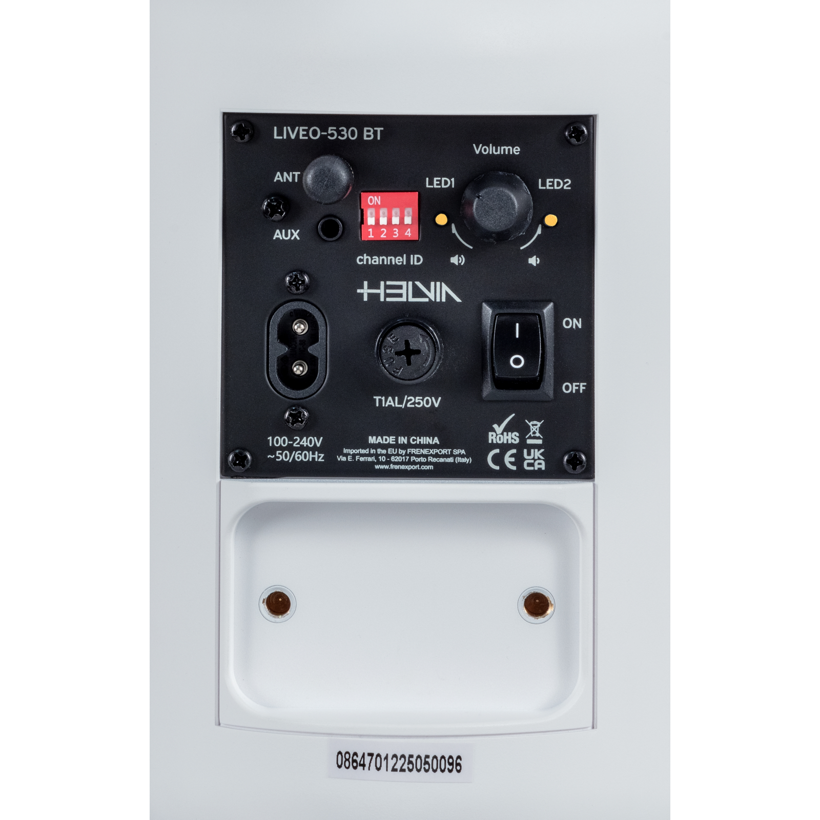 For each speaker, you can choose whether to amplify the mono, left or right signal coming from the transmitter or the AUX input. The transmitter, in addition to having a normal Bluetooth connection that can be connected to mobile phones, tablets, etc., has a stereo AUX input. There is also an additional stereo AUX output to connect the audio system to an additional power amplifier.