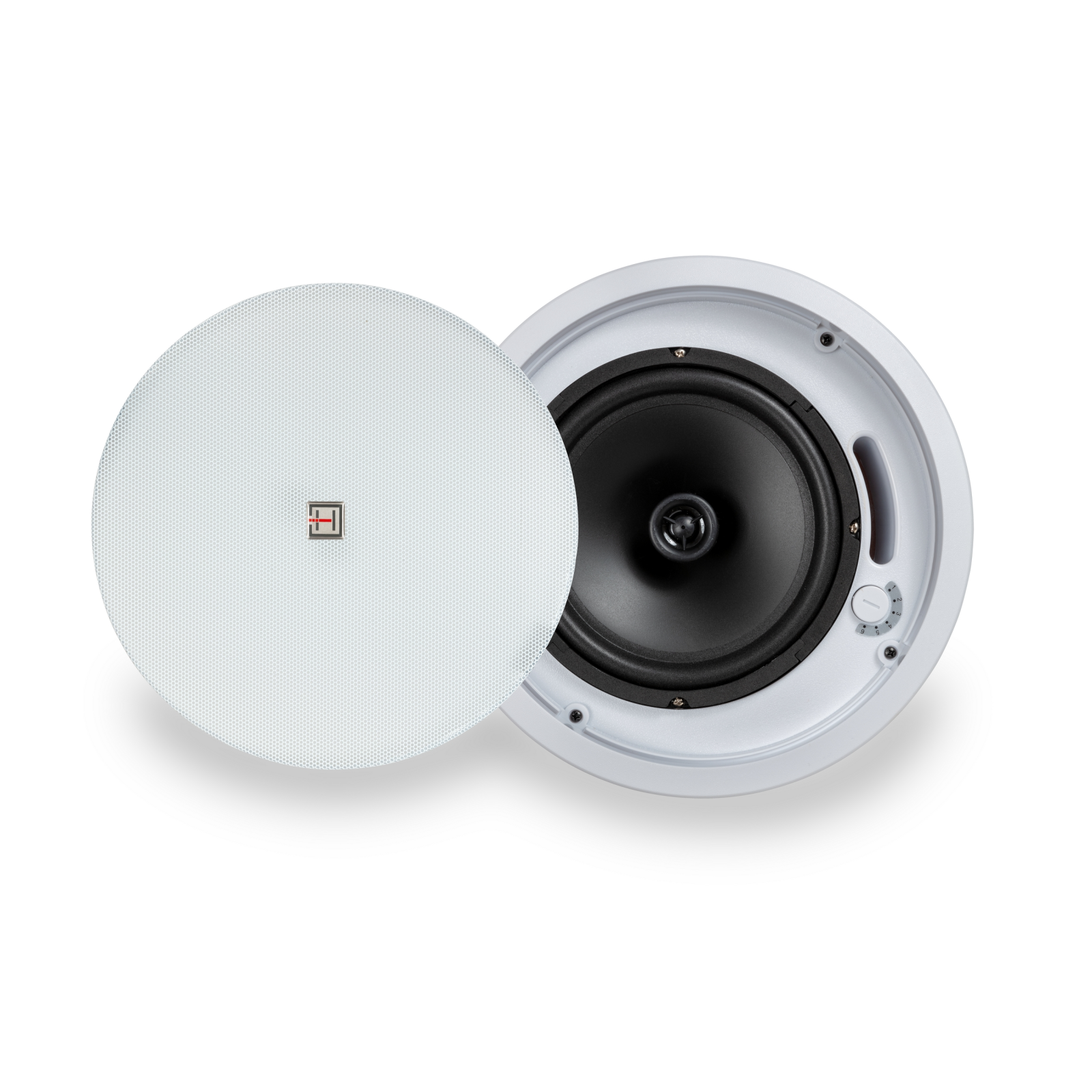 Installation is very easy, thanks to the quick mounting system with 4 screws. These screws are hidden behind the grill and offer an elegant and minimalist design. The built-in line transformers allow use with 70/100V lines and offer three power taps plus 8ohm to better adapt to different speaker arrangement and amplifier powers. They come in white color but can be painted in any color.