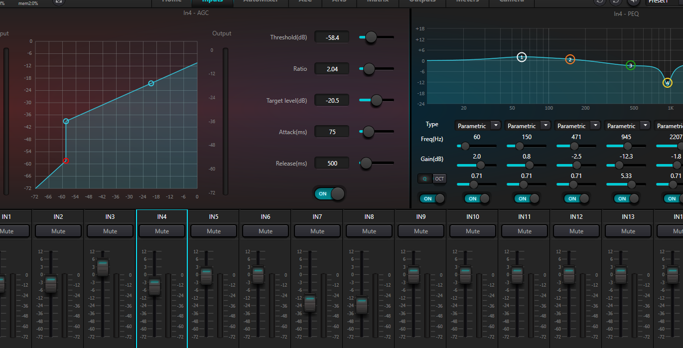 Collapse textVersatility is at the heart of the control experience. All functions can be managed through dedicated Windows® software featuring a clean, intuitive interface that makes programming every processing parameter fast and straightforward. The design is professional and highly functional: anyone familiar with audio processors and digital control systems can create and customize presets in just minutes, seamlessly integrating analog inputs/outputs, Dante networking, and a full suite of advanced processing tools.