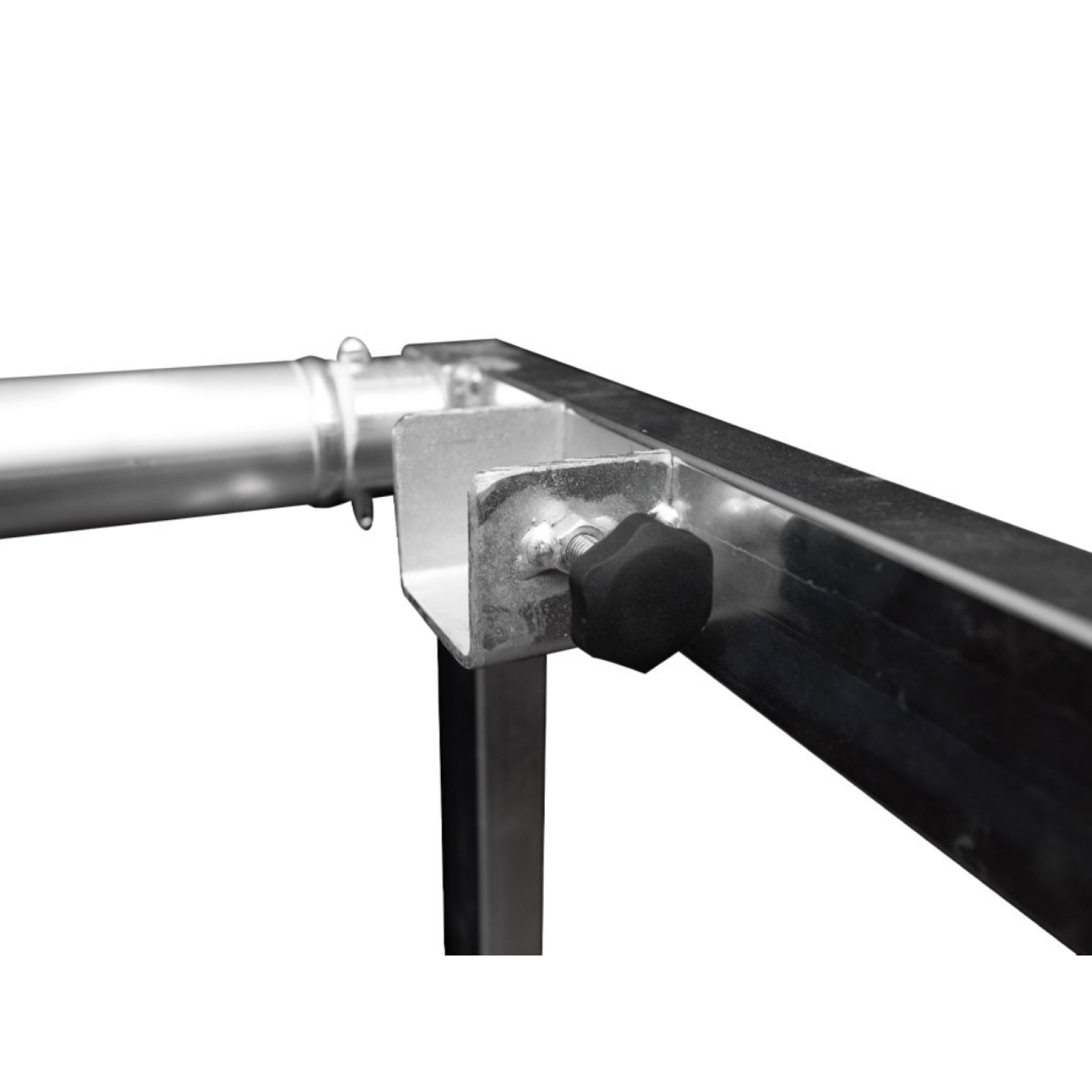 Trolley for transporting spotlights made of steel and aluminum. It has four rubber wheels (two of them with brakes) and removable tubes so that the trolley can be stored after use, taking up as little space as possible. Dimensions: 1430 x 600 x 2000 mm (Height, width, length).