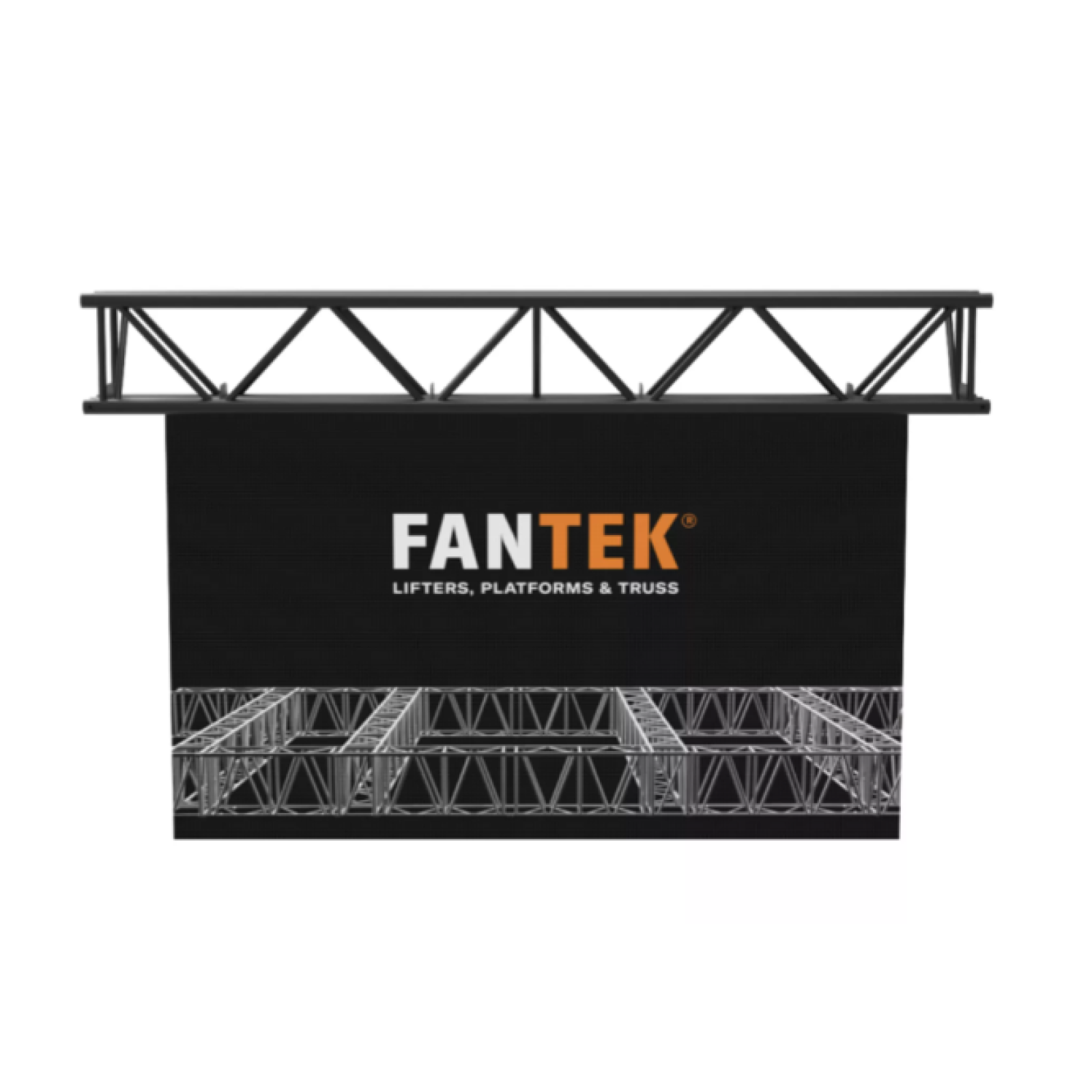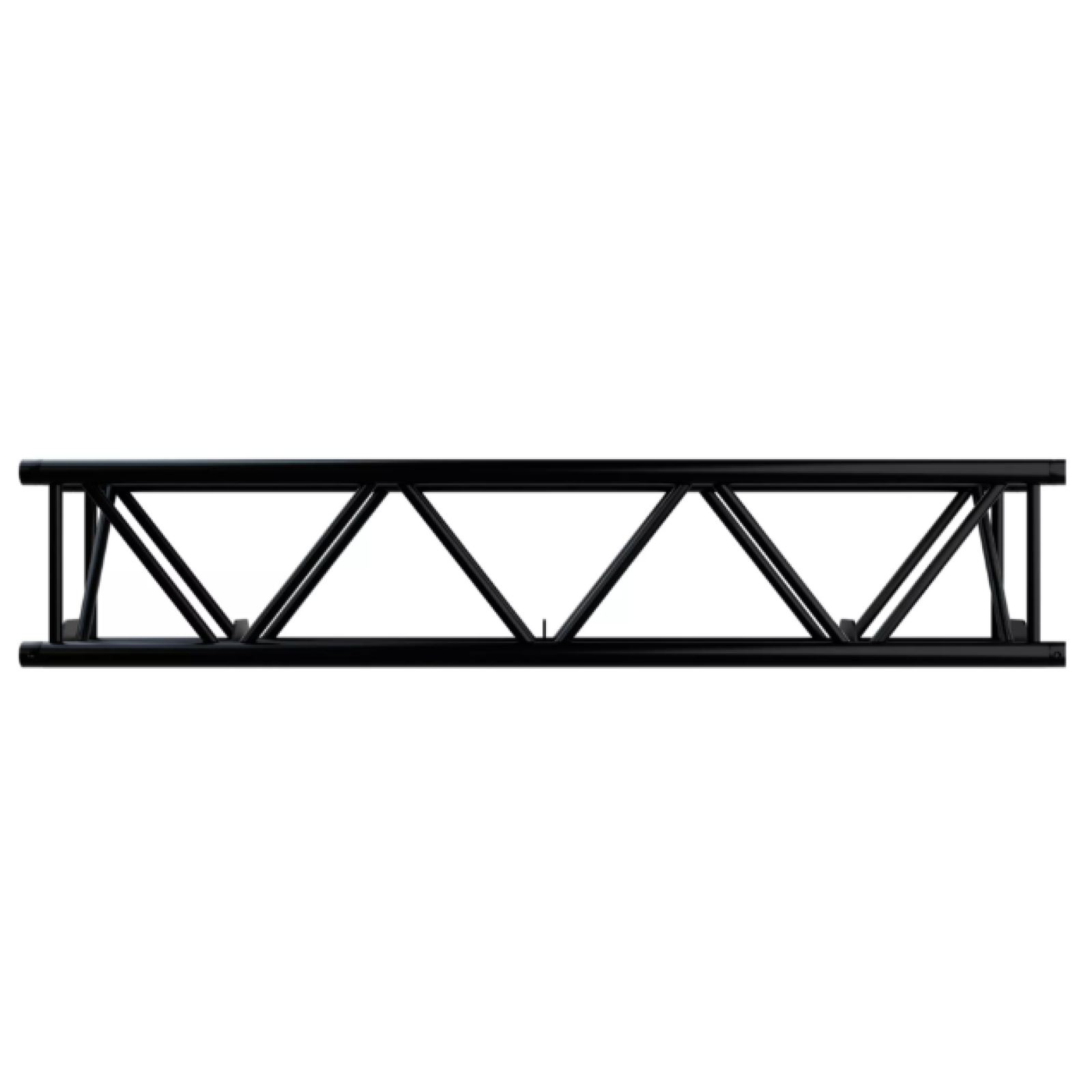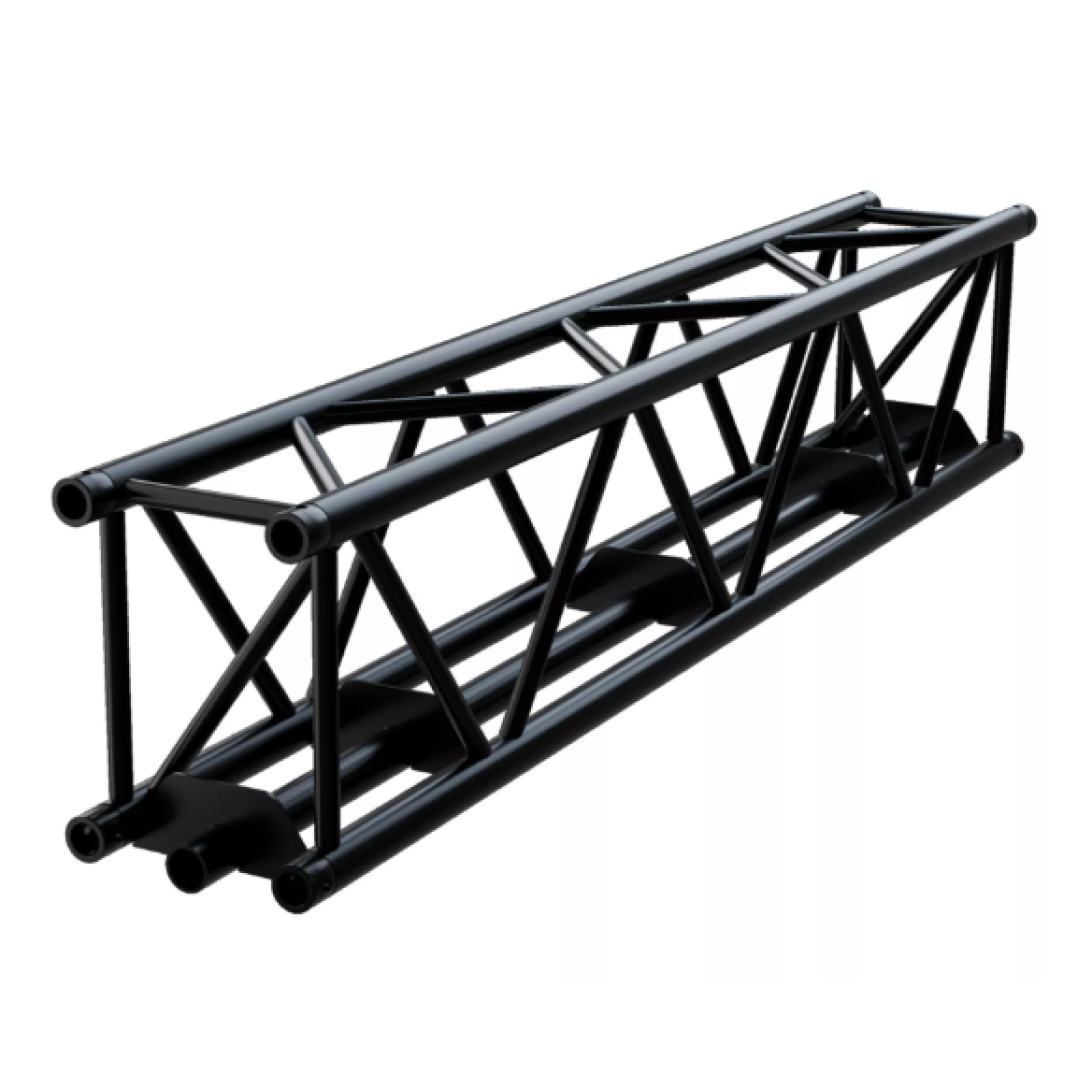 Section of aluminium square truss structure measuring 400 mm high and 300 mm wide, manufactured with main tube of 50 mm in diameter and 4 mm thick, and auxiliary tube of 25 mm in diameter and 3 mm thick. Especially suitable for assemblies with led screens. CBC50 conical connection system. It is available in 0.5 m, 1 m, 2 m, and 3 m lengths, and in silver or black. Includes 4 double cones, 4 pins, 4 threaded pins and 4 'R' safety clips. F SERIES compatible.