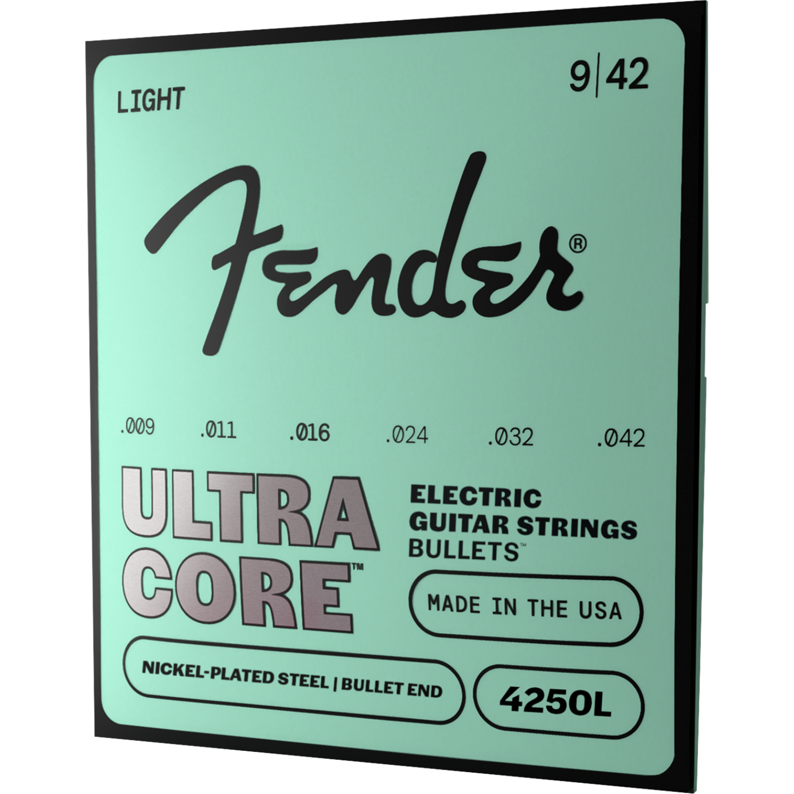 UltraCore™ Nickel-Plated Steel bullet-end strings are designed for players who demand more—delivering ultra-refined feel, defined clarity, and fortified tuning stability. At the heart lies our reinforced UltraCore™ high-carbon steel wire, engineered for rock-solid pitch control and unmatched strength under pressure. Wrapped in premium nickel-plated steel and paired with our patented bullet-end design built specifically for the Stratocaster®, these strings offer enhanced tone, durability, and razor-sharp definition that elevates every note. Collapse text
