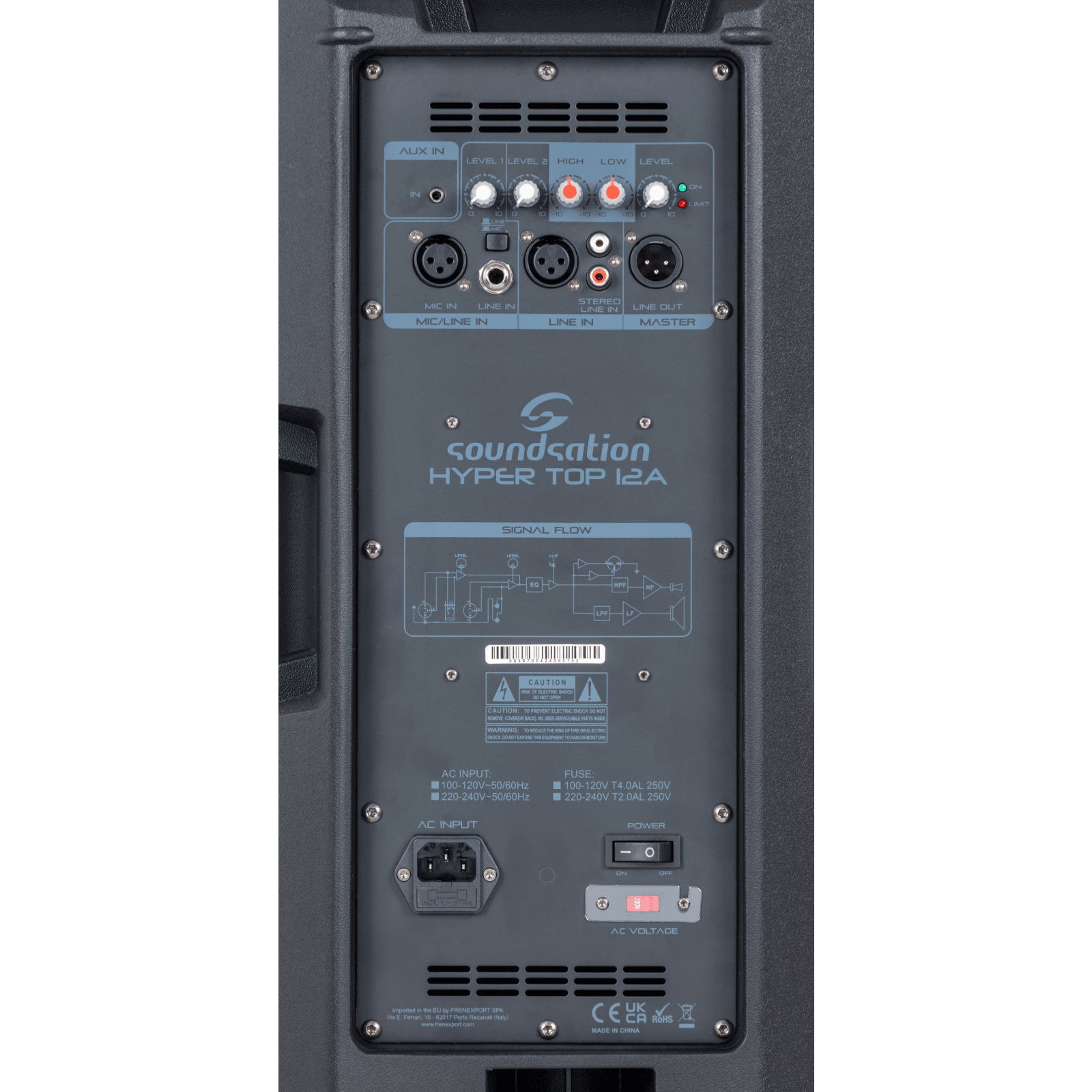 HYPER series is the result of years of experience gathered by Soundsation in Portable Sound systems.This speaker line is built with a sturdy, lightweight and stylish polypropylene enclosure with full metal grille and acoustic foam to protect the transducers. The cutting-edge design, according to latest industry standard, offers both a great look and an optimal sound quality. All models are equipped with a Class D amp and switching power supply to deliver massive power with great efficiency and light weigh. (with the exception of the 6”). MIC and Line inputs to connect all major input sources, being microphones, mixers or media players. Featuring four M8 flying points distibuted on each side, 1 handle on top and a standard D36mm pole mount hole it is ideal for both fixed installation or portable applications. Collapse text