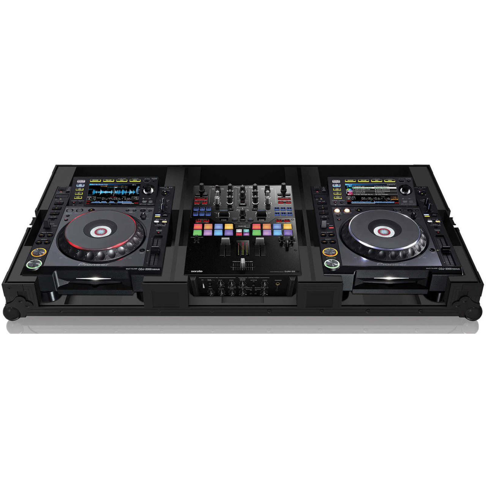 The robust Zomo Set 2009 NSE – Night Style Edition – has especially been developed for the transport and storage of two Pioneer cd-players, such as CDJ-2000 NXS, CDJ-1000, CDJ-900 NXS, CDJ-850 and the new Pioneer battle-mixer DJM-S9 . The comfortable carrying handle of the Zomo Set 2009 NSE allows you to transport your cd-players and mixers from Pioneer with ease, which is also supported by the durable and convenient wheels, which allow you not only to carry the NSE flightcase but also push or pull it. The very easy handling of the case, allows you to set it up without any effort. This robust Zomo flightcase perfectly protects your equipment on tour, on the road or at home. The case has been constructed with 9mm laminated plywood and has additionally been made durable with aluminum profiles and shock resistant ball corners. The Zomo Set 2009 NSE is nearly indestructible and perfect for the road or on flight. The cool, modern black (NSE = NIGHT STYLE EDITION) design completes the concept optically. Sheer genius and totally cool! It’s Zomo! Collapse text