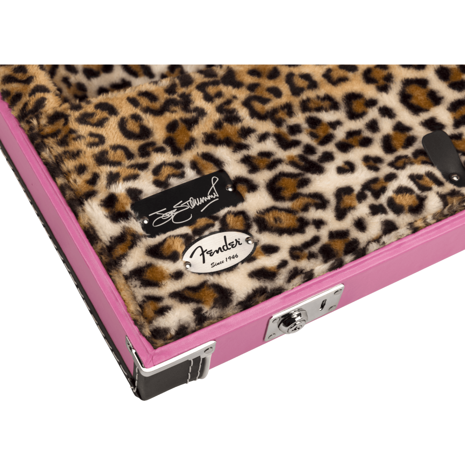 Punk poet, musician and composer, Joe Strummer spent his life smashing musical and cultural boundaries both as the singer of The Clash and as a solo artist. Celebrate Joe Strummer’s unparalleled style and substance with his signature guitar case for Tele® and Strat® models. Featuring a bold pink tolex exterior, this 3-ply hardshell wood case boasts a vinyl wrapped steel carry handle and draw latches in addition to triple-plated silver hardware throughout the case. The striking leopard print interior is crafted from soft crushed acrylic plush interior lining while a spacious accessory compartment offers plenty of room for accessories. This one-of-a-kind signature case also includes a hidden compartment under the accessories door that holds a treasured piece of Joe Strummer's illustrious career inside. Collapse text