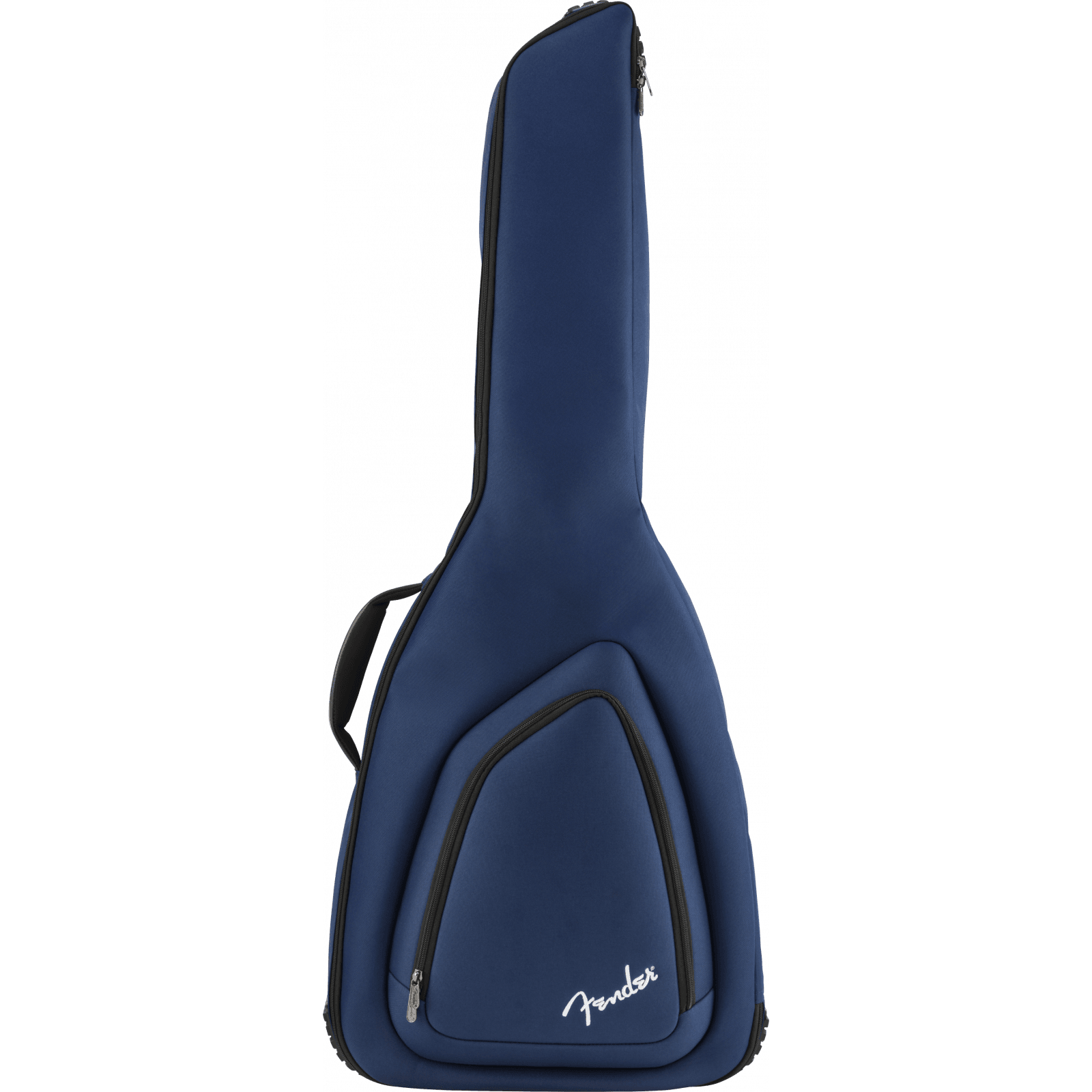 Fender's Performance Plus Series gig bag in Midnight Blue is a stylish and affordable way to keep your small body acoustic guitar safe while traveling. Featuring our iconic asymmetrical Fender shape, its durable outer layer is constructed of tough 600 Denier polyester that protects against impacts while avoiding ripping and tearing. Its interior is filled with 10mm padding and lined with soft touch microfiber that keeps your instrument secure while preventing potential finish damage. The 610 gig bag also comes with a comfortable two-piece handle and ergonomic air mesh backpack straps with easily adjustable ladder lock buckles, so you can comfortably carry your instrument without unnecessary physical strain. Plus, the front storage pocket offers additional storage space for small accessories and a business card window.
