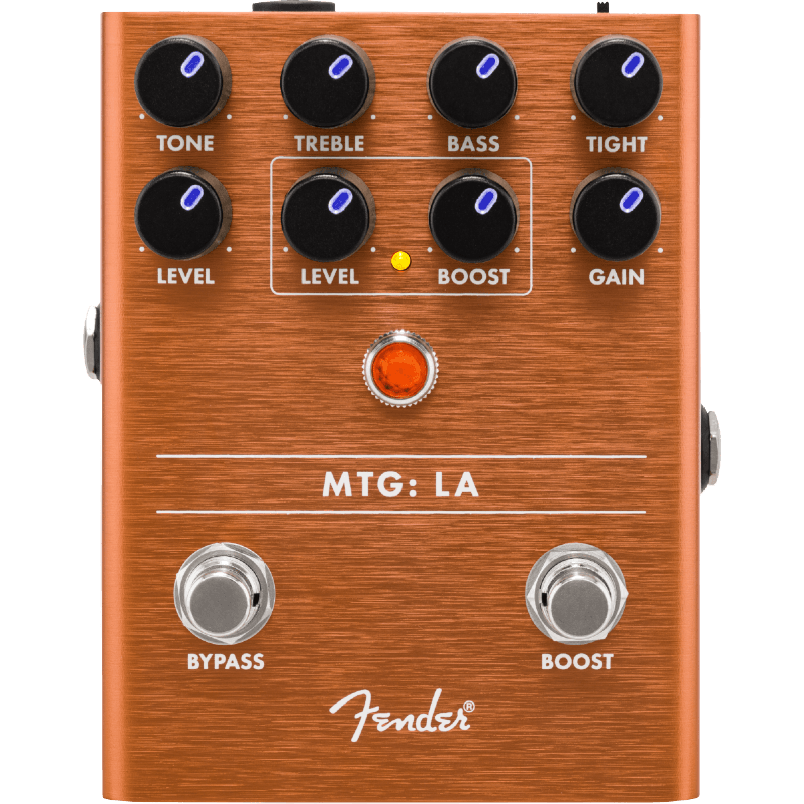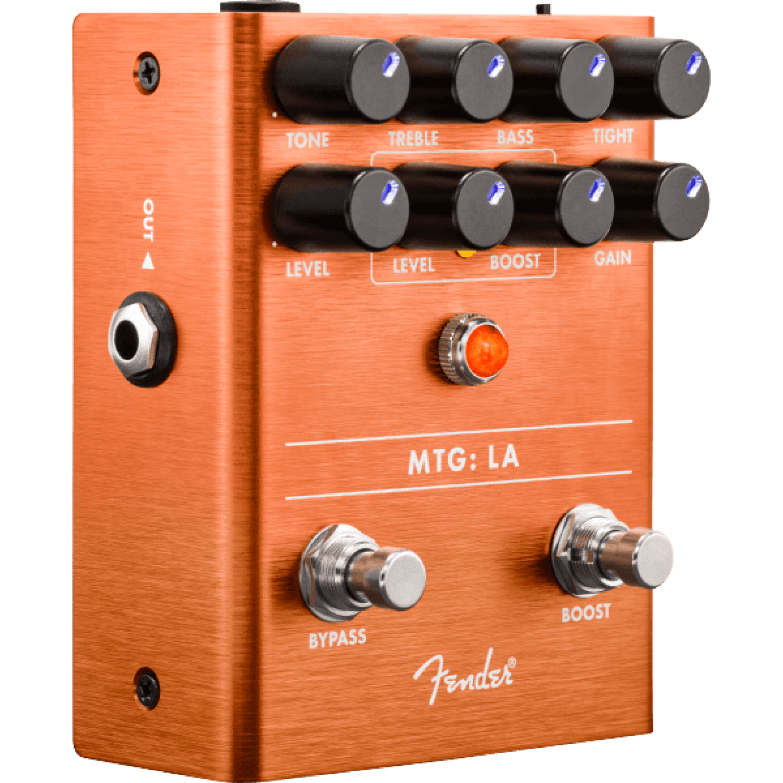 Few things are as satisfying as the real-deal distortion sound of glowing glass—vacuum tubes are responsible for the tones you fell in love with. MTG:LA® is a tube distortion pedal based around a genuine, U.S.-made NOS 6205 preamp tube. Tone, Bass, Treble and Tight controls make it easy to shape your sound, while the distinctly Fender footswitchable Boost adds Volume, Gain or both to make your solos stand out.