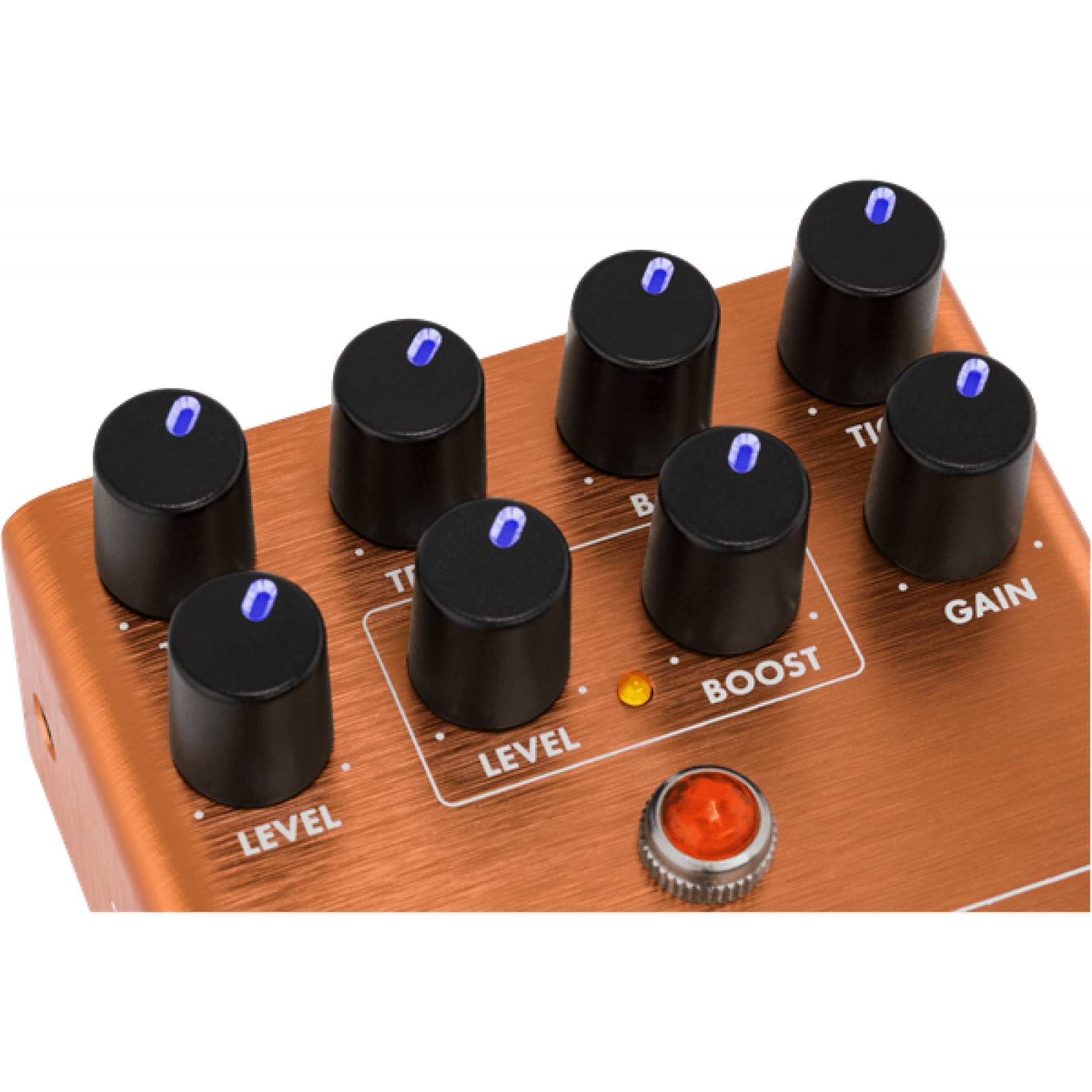 Designed by our in-house team of experts, the MTG:LA® Tube Distortion is an all-original Fender circuit. The chassis is crafted from lightweight, durable anodized aluminum, and the Amp Jewel LED gives your pedalboard the classic Fender look. The switchable LED-backlit knobs show your control settings on a dark stage at a glance.