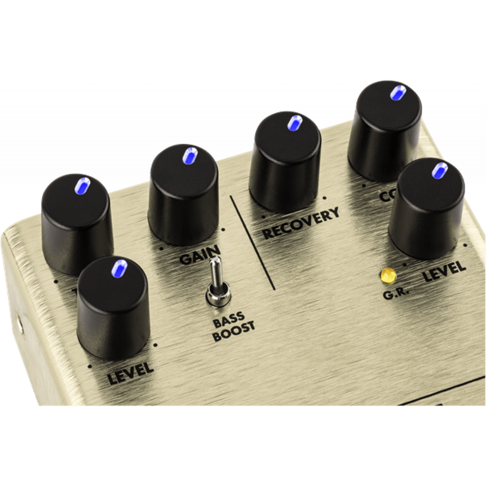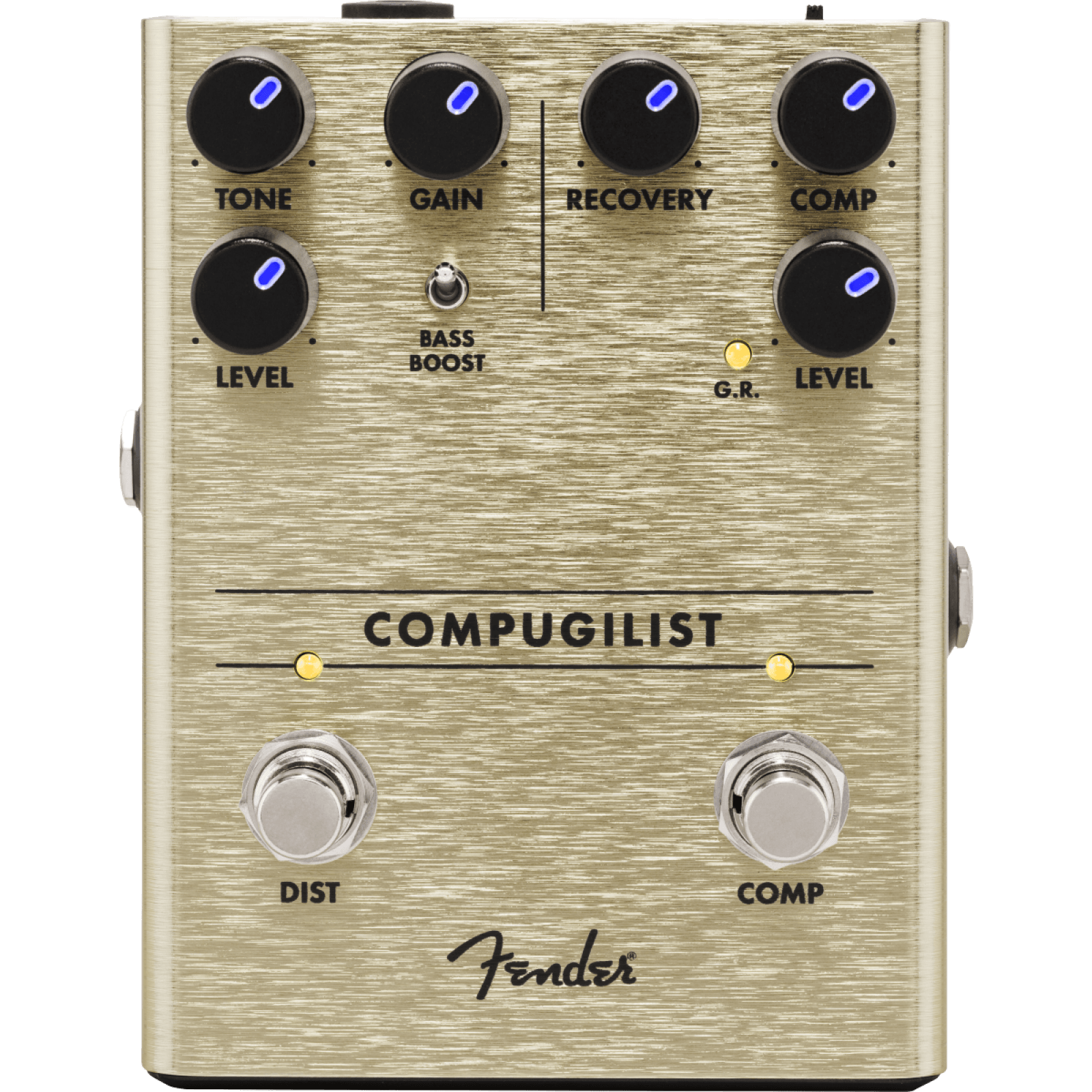Designed by our in-house team of experts, the Compugilist® Compressor/Distortion is an all-original Fender circuit. The chassis is crafted from lightweight, durable anodized aluminum, and the Amp Jewel LED gives your pedalboard the classic Fender look. The switchable LED-backlit knobs show your control settings on a dark stage at a glance.
