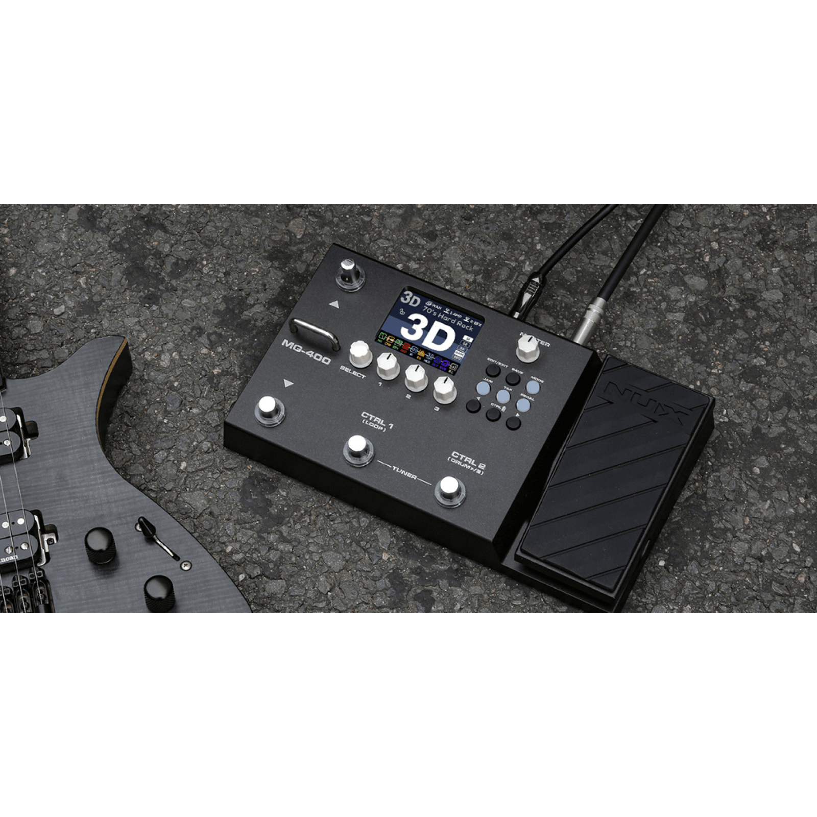 The NUX MG-400 is a value packed modeler akin to his little brother, the MG-300. MG-400 houses 2 powerful DSP chips for high-definition White-Box Amp Modeling algorithm (TS/AC-HD) and Core-Image post-effects.