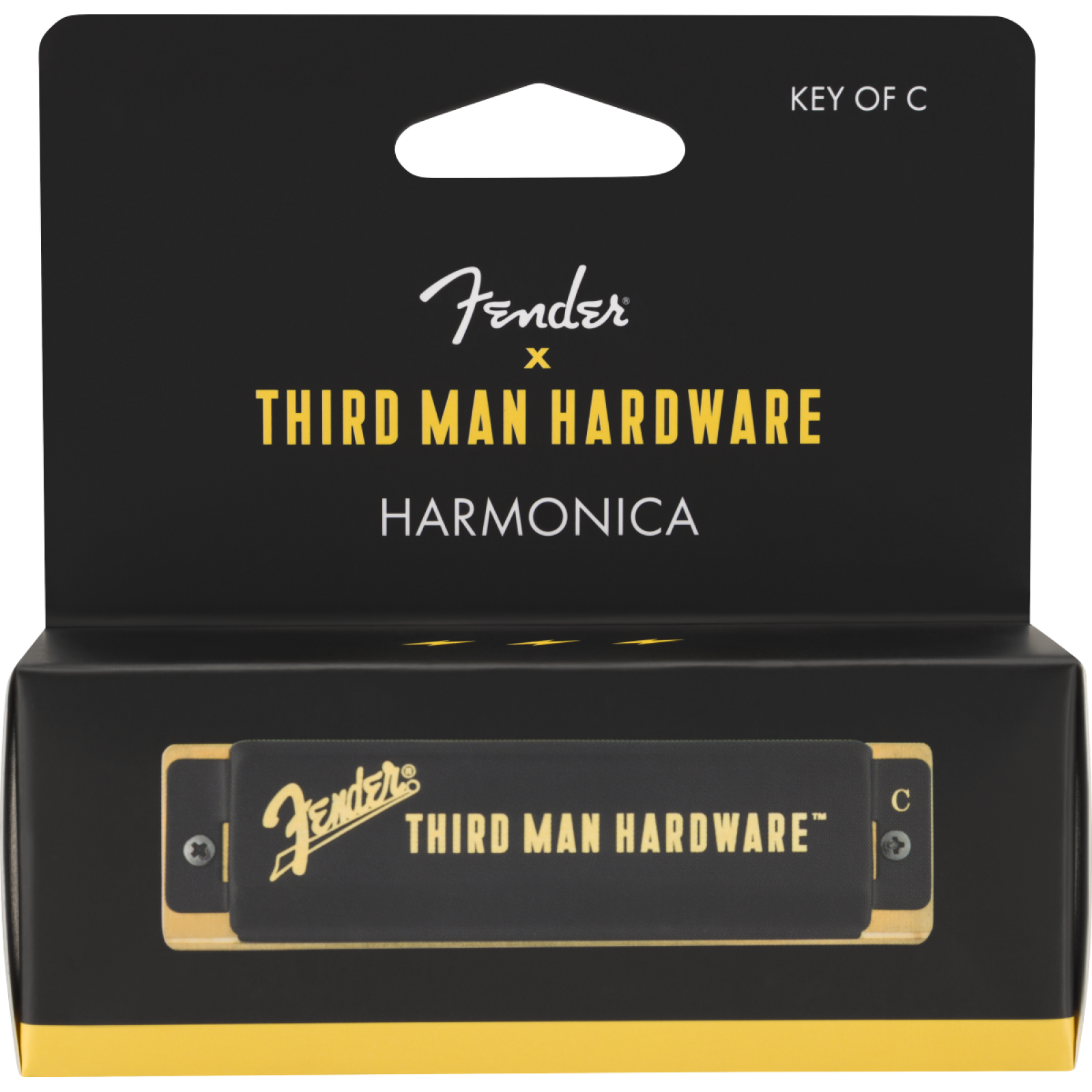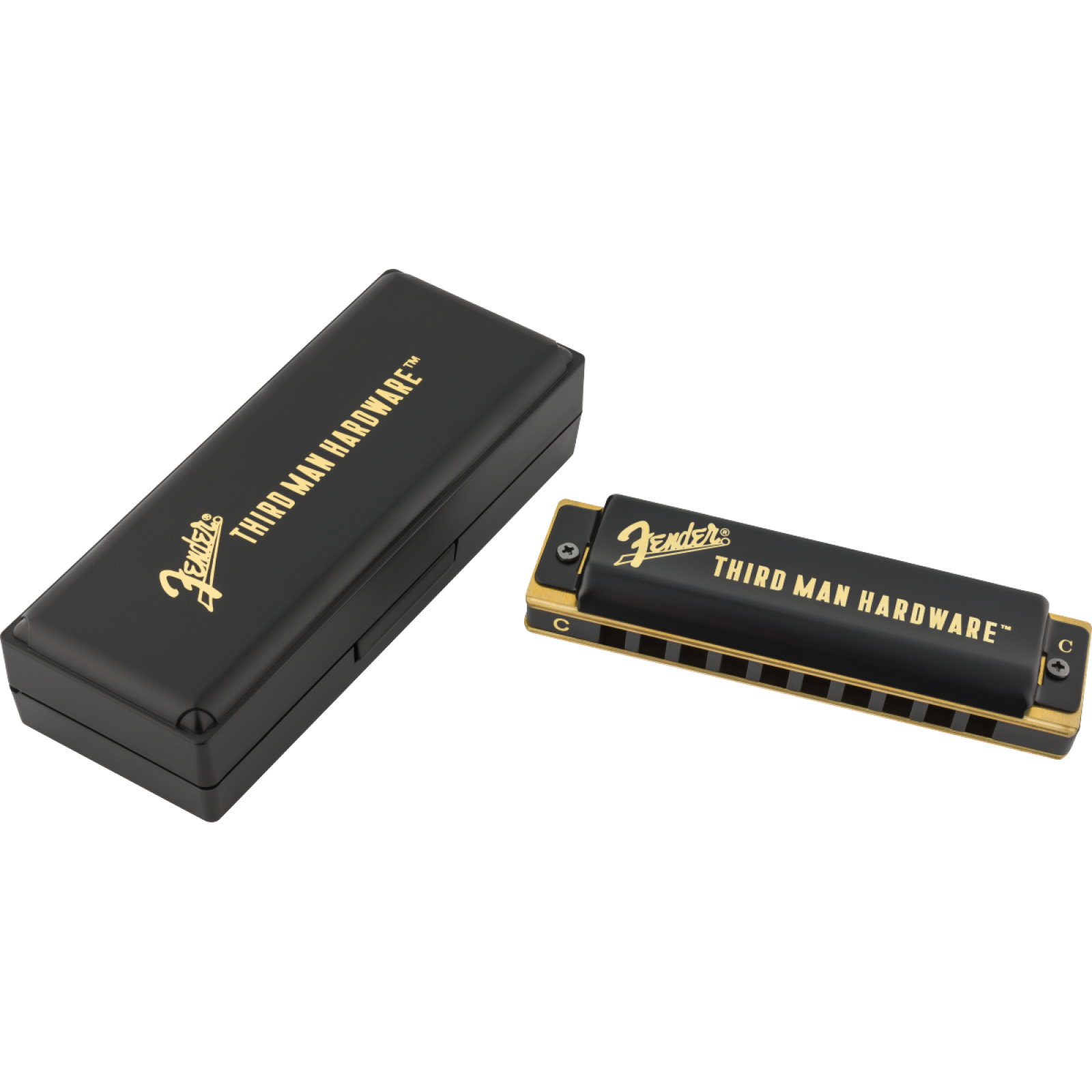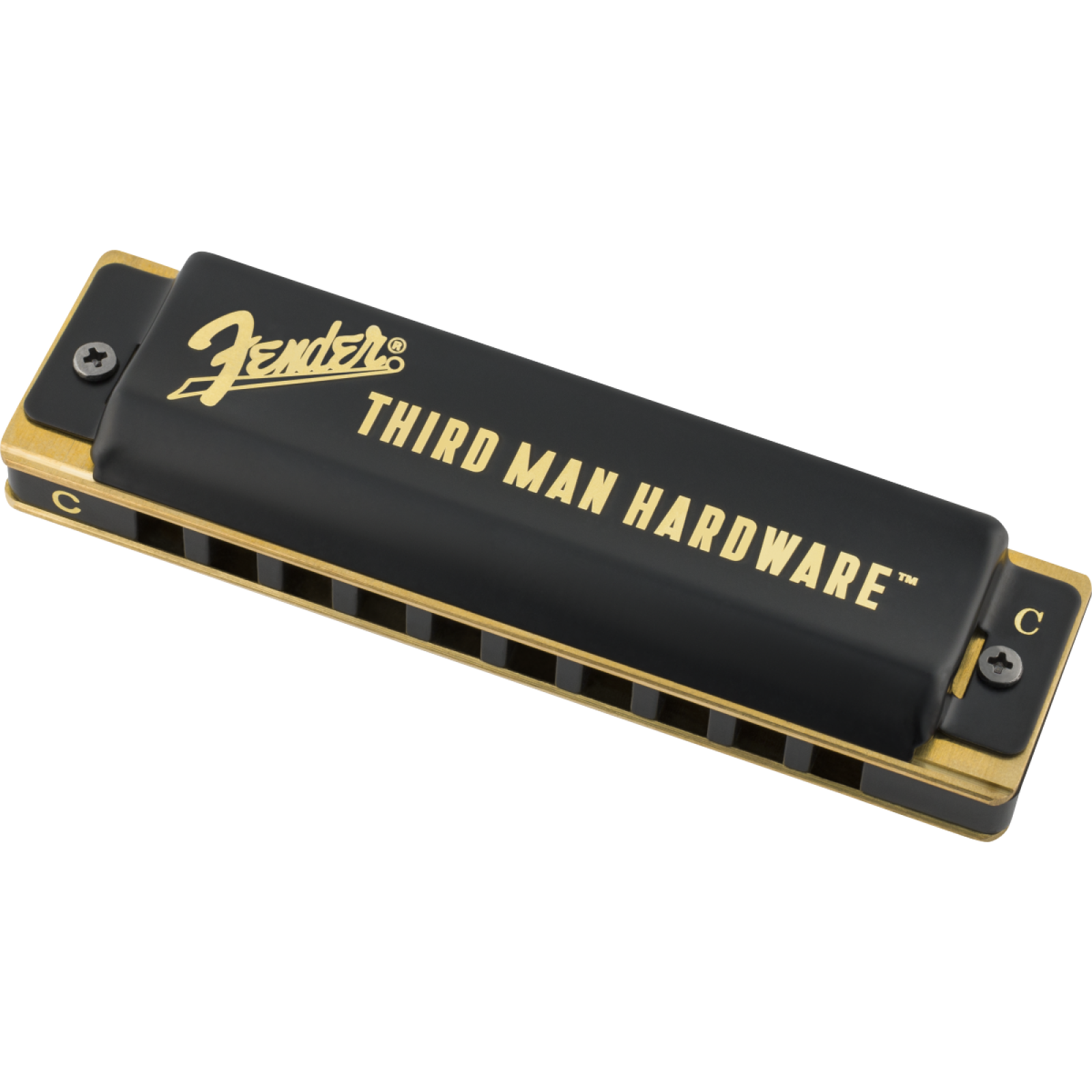 Add retro-inspired style to your sound with the Fender® x Third Man Hardware™ Harmonica. Designed for everyday players, this 10-hole diatonic harmonica features phosphor bronze reeds for bright, bold tone and a moisture-resistant ABS comb for long-lasting reliability. Drawing inspiration from Third Man’s iconic aesthetic, its sleek gold-etched casing, and Third Man Hardware logo deliver vintage flair and timeless appeal. Bring a touch of Jack White’s legendary look to your performance with the Fender x Third Man Harmonica -- so you can play with style and confidence.