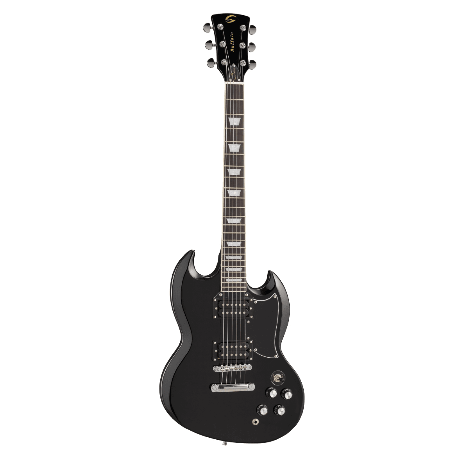 No doubt: Buffalo Pro rhymes with Rock! Solid poplar body for deep tone, set-in neck for improved sustain, laurel fretboard featuring 22 easy-access frets. The 2 unconvered humbuckers deliver powerful bite and unmatched sustain, while the 3-way switch and 2 volume/2 tone independent pots offer great sound flexibility. A perfect choice for blues, rock and rawer music.