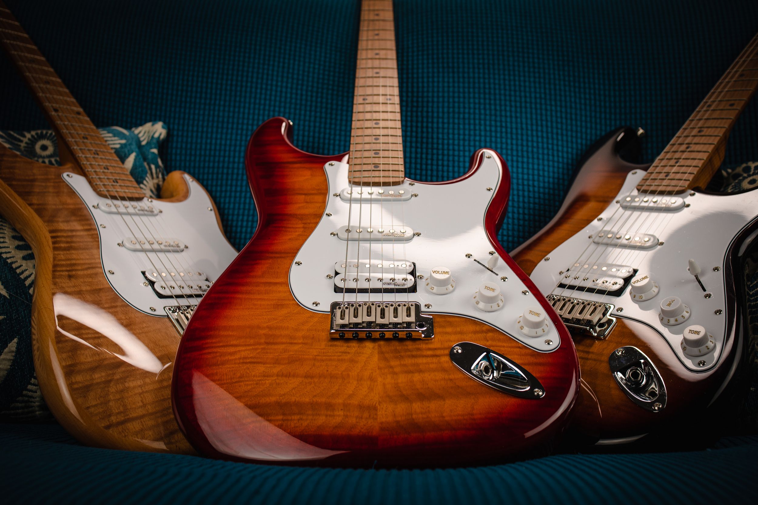• Pick ups: 2 Wilkinson single coils + 1 Wilkinson splittable humbucker with push/pull