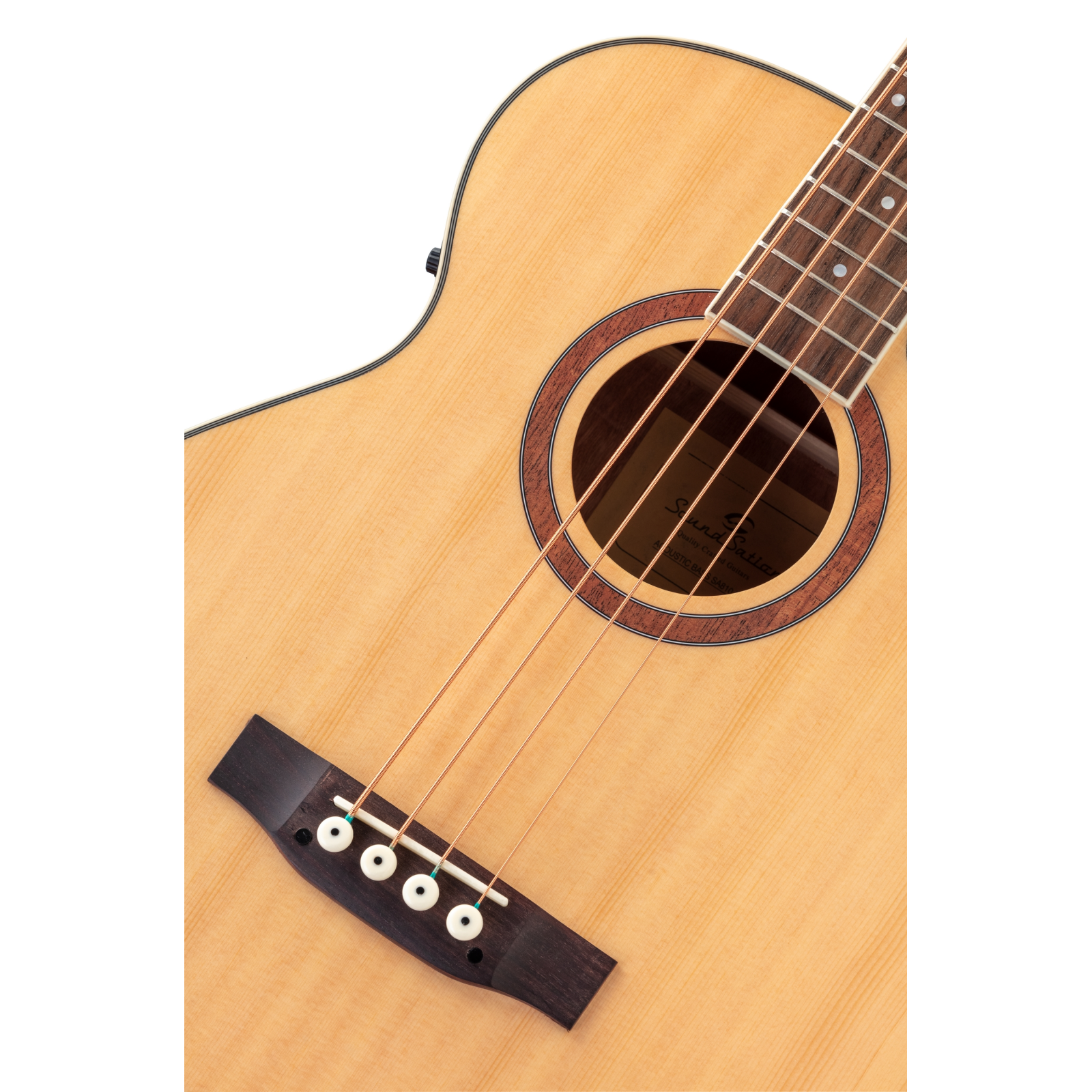 The Soundsation SAB10 NTS 4-string acoustic bass with cutaway design offers an excellent combination of playability and versatility. Equipped with a preamp with built-in tuner, it ensures precise control of the sound in both acoustic and amplified.