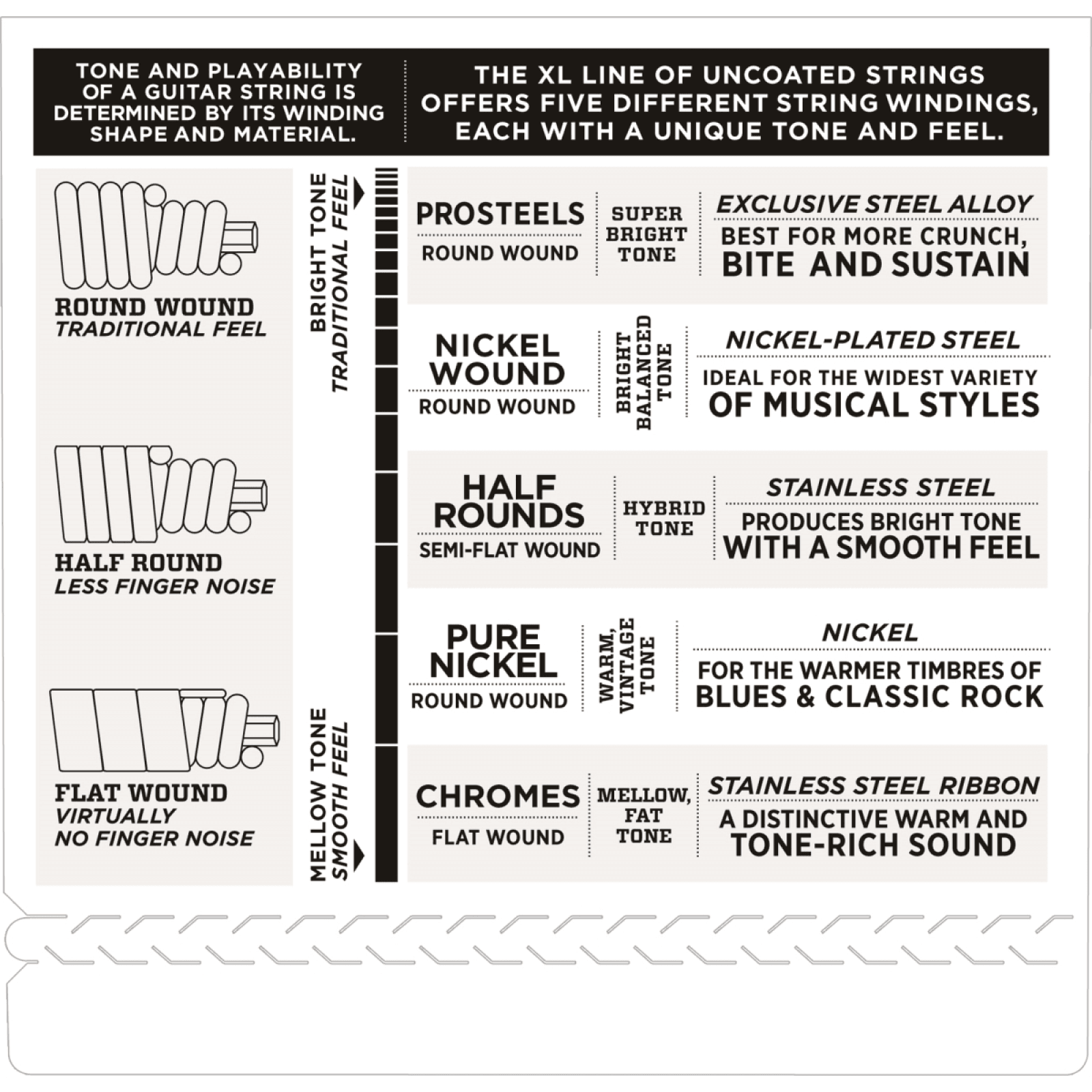 ProSteels are D'Addario's brightest and most magnetic bass strings. A specialized steel alloy delivers harmonically rich, brilliant high-end coupled with deep, tight lows that work in tandem to create the coveted "Piano tone" steel players crave. Great for both articulate fingering or aggressive picking, ProSteels give you the extra edge and punch you need to cut through the mix.EPS230, D'Addario's heaviest gauged ProSteels bass guitar strings offer maximum volume and a tight, booming tone. They can also be used for down tuning. Collapse text