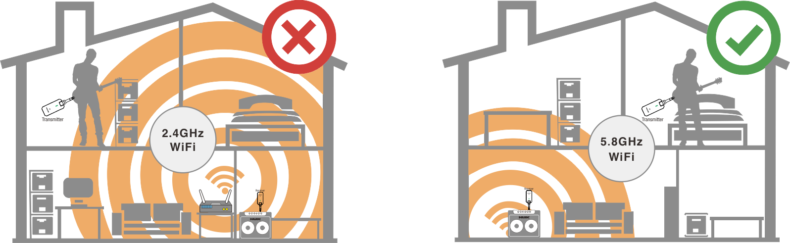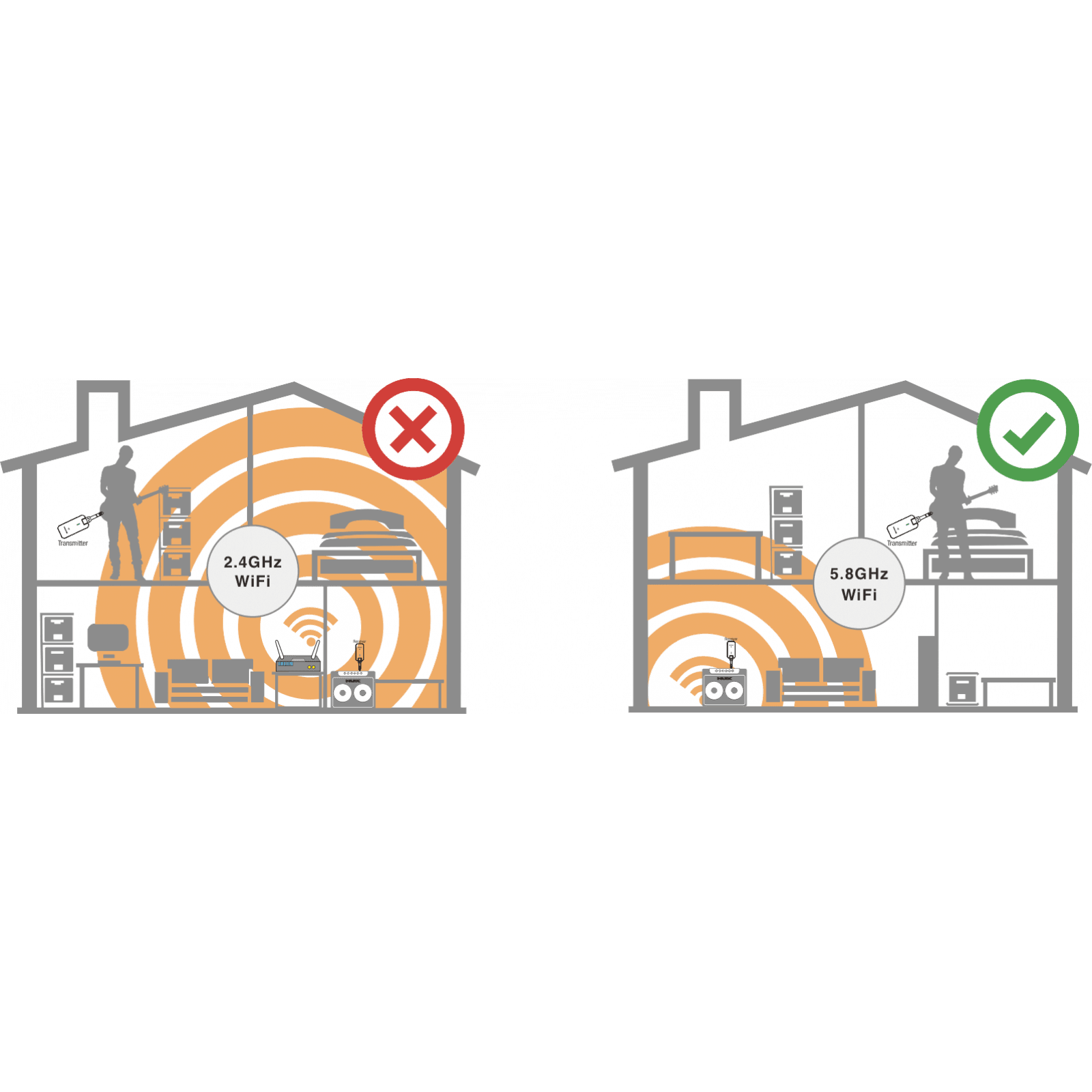 C-5RC Wireless delivers the signal on 5.8 GHz frequency range. That's a global interference-free broadcasting range you can use everywhere without a signal break.