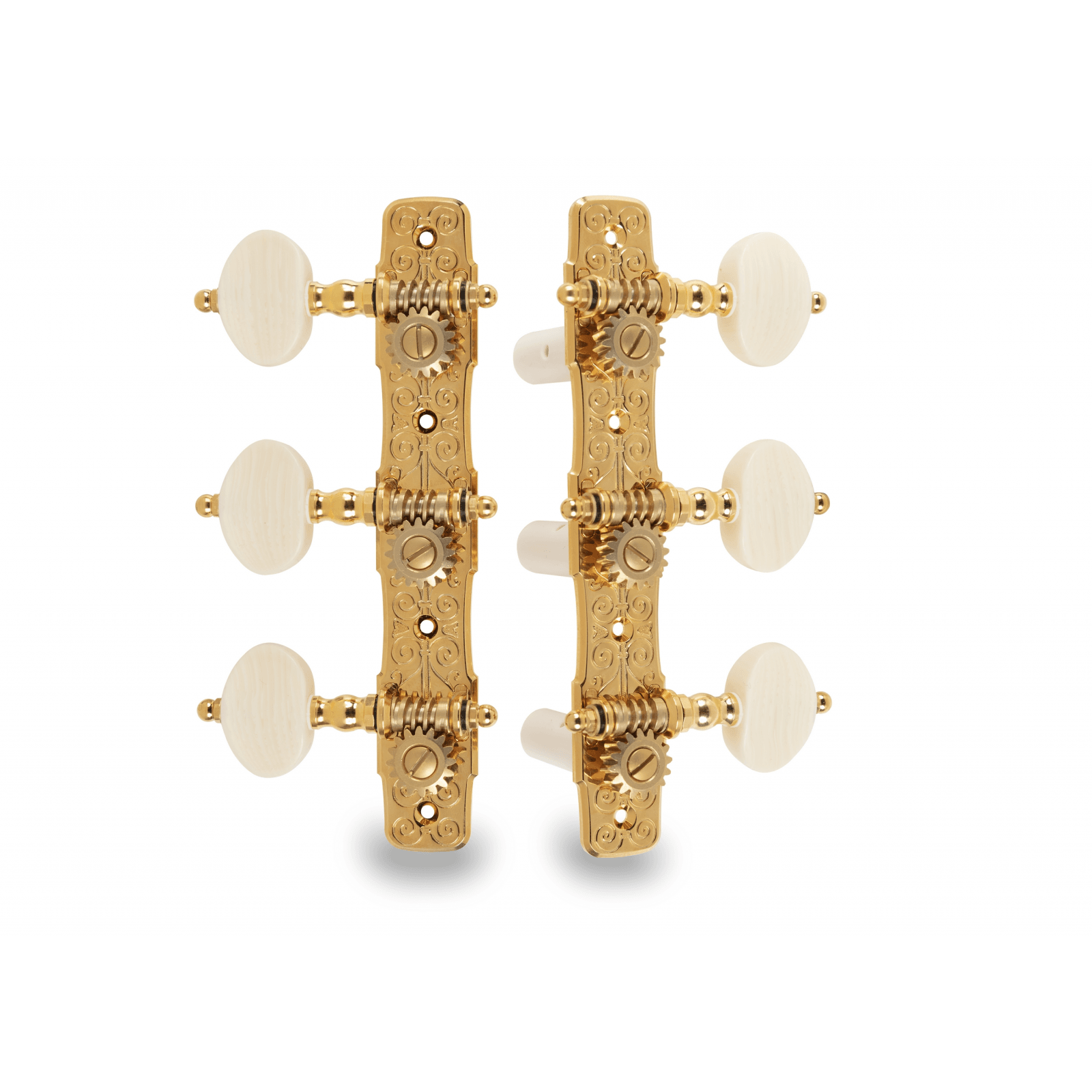 Brass Machine Head for classical guitar finely crafted and embellished with P style pearl buttons. Elegance and precision are essential elements to bring the instrument to the highest levels.