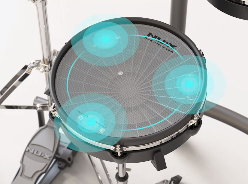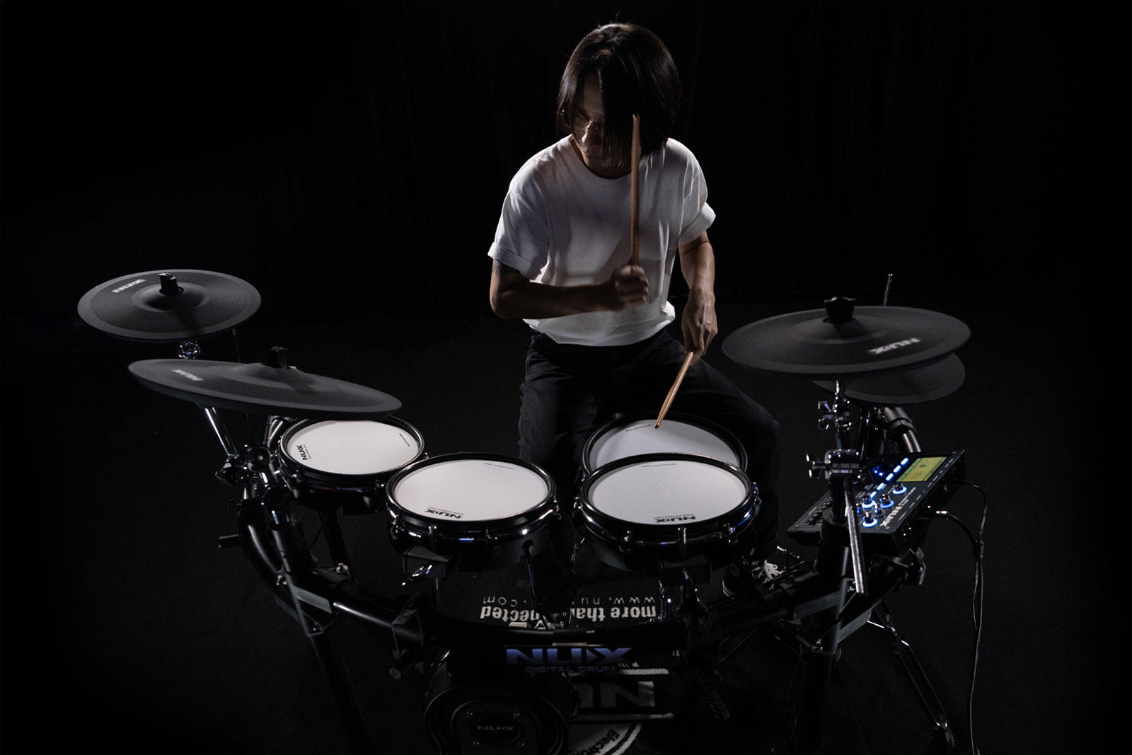 The NUX DM-8 is an electronic drum kit equipped with REMO Meash heads featuring new innovative technologies, giving drummers an authentic acoustic-like feel and realistic expressive playing.