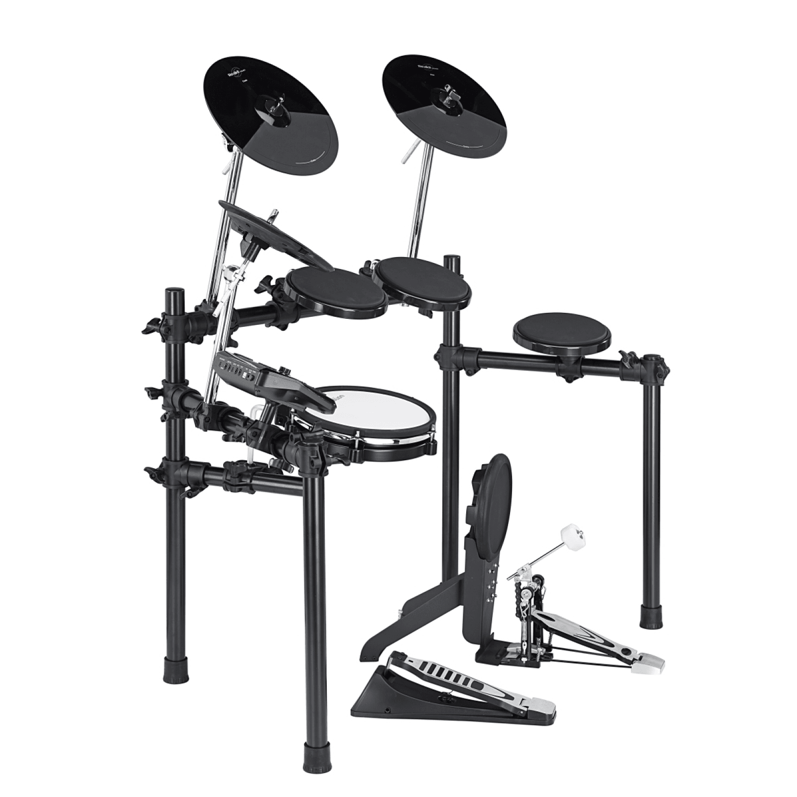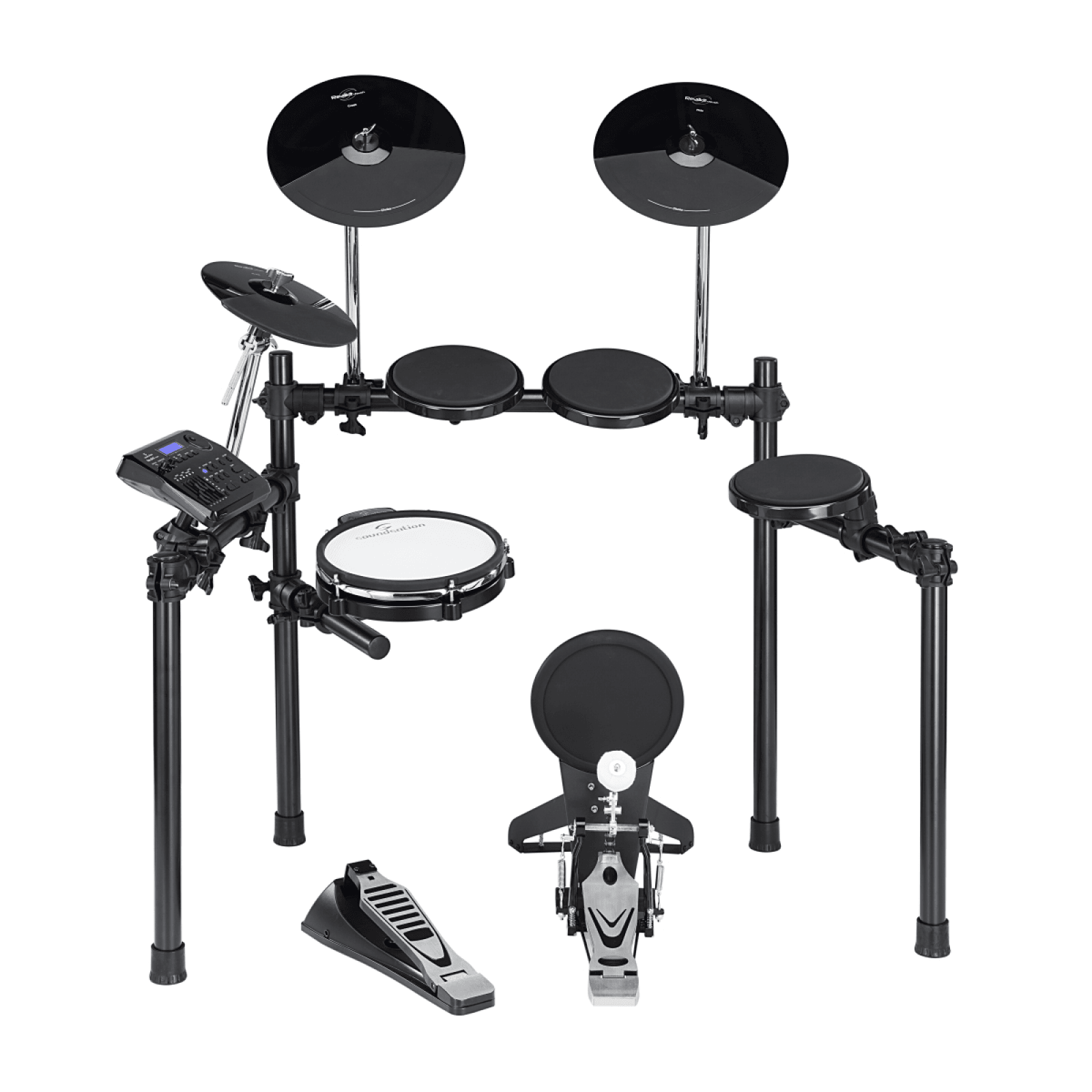 Soundsation RealKit-Touch delivers natural feel and sound. The snare drum is equipped with mesh head for a perfect bounce. Pads are velocity sensitive and offers a great dynamic response alike the acoustic drums. In order to provide the widest expression pattern, the snare drum has 3 different sounds. Crash and ride cymbals are equipped with choke feature to stop the sound immediately and feature 2 different zones. You won't miss your acoustic kit. The module is equipped with an LCD backlight display and an user-friendly interface, along with a mixer to adjust the volume of single components . 431 voices divided in 20 preset drumkits are loaded with quality sound fitting all genre and styles, while 20 user defined sets are available for your customization. Adding up the Eq and DSP functions, you can truly create great sounds. Wanna pratice? 40 demo song are ready to go and metronome fuction helps to improve your timing. As a latest generation kit, RealKit-Touch won't make you trouble. It's coming on a pre-assembled rack for quick & easy mounting, so you can jam right away! Collapse text