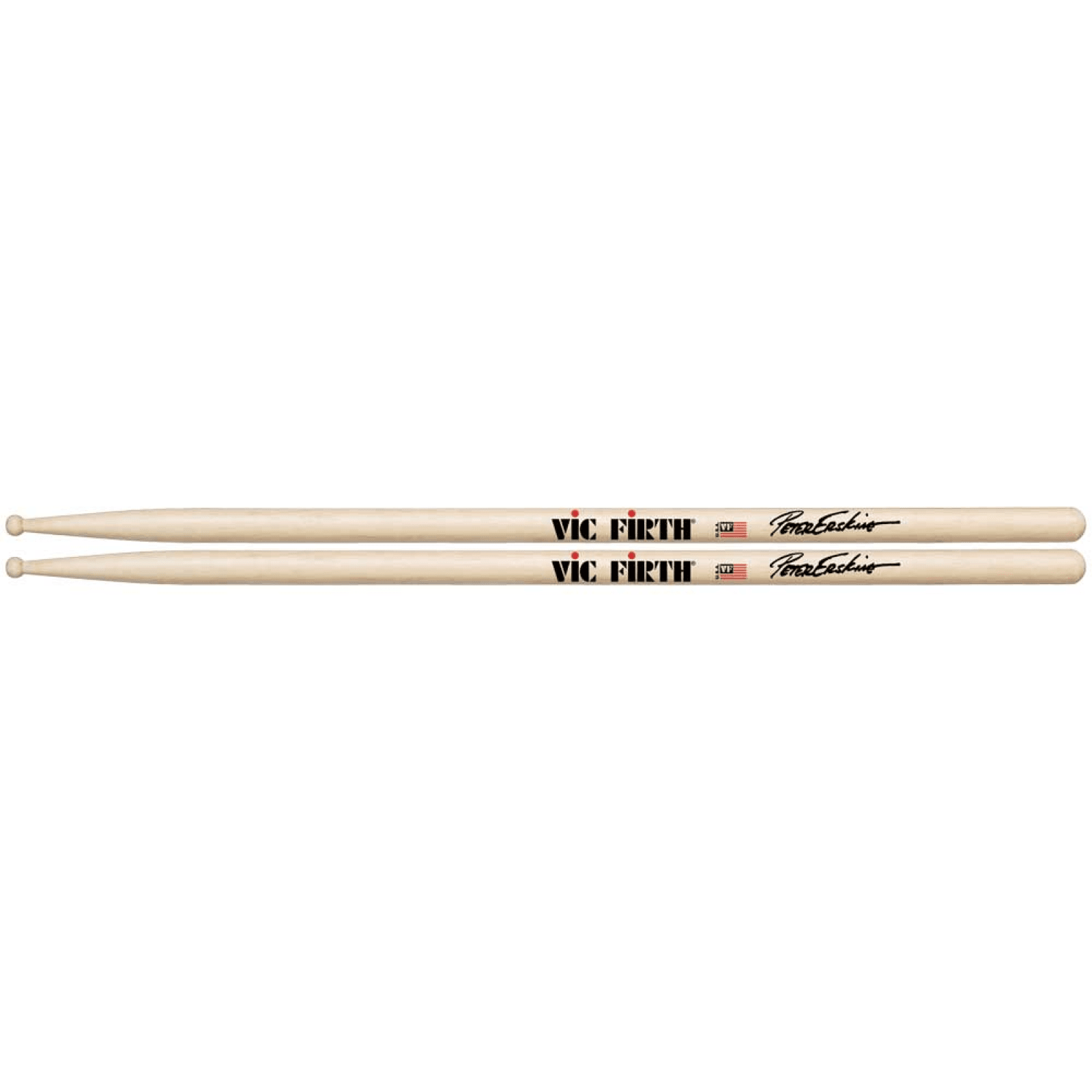 Each Vic Firth Signature Series model was conceived through extensive research with the finest drummers from a variety of musical styles. The designs reflect their musical requirements in terms of balance, feel, sound projection and cymbal color. All colored sticks feature a clear, natural tip. All sticks are hickory unless otherwise noted.Peter Erskine (SPE)Drumstick are light and fast with a piccolo tip for pinpoint articulation on cymbals. Collapse text