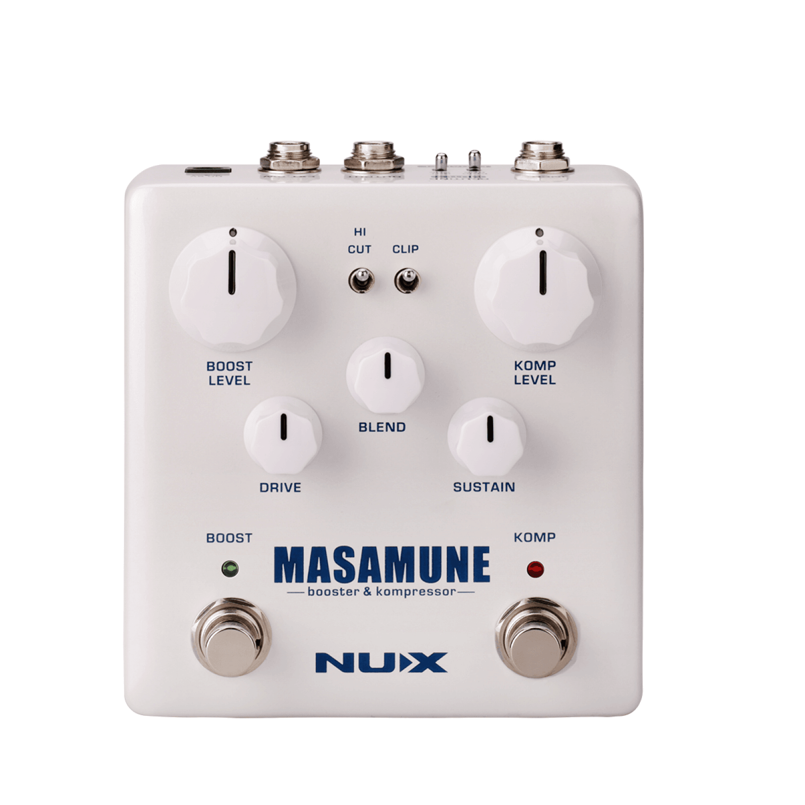 Booster and Compressor Pedals are the gigging guitarist’s secret weapon. Both pedals are now available in one convenient metal housing, and it comes with 4 selectable signal routings. The Boost Section comes with Boost Level, Drive, and Hi-Cut controls. The Compressor Section comes with Komp Level, Sustain, Blend, and Clip controls. The Masamune has an external foot-switch jack Input, you can easily operate the pedal by using an additional remote switch. Collapse text