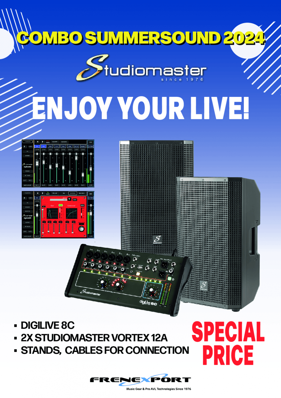 The combo also includes two aluminium stands and professional cables for power and connection.Prepare for success with Summersound2024, Frenexport's comprehensive solution for your events.