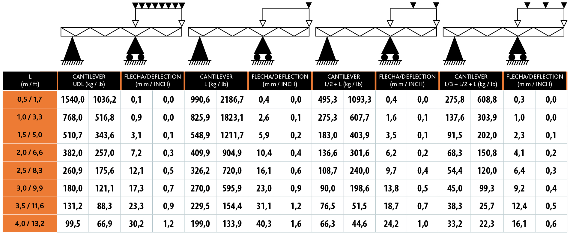 29 cm square aluminium truss structure section, made of 50 mm diameter and 2 mm thick main tube, and 16 mm diameter and 2 mm thick auxiliary tube. It is available in 0.5 m lengths, and black. Includes 4 double cones, 4 pins, 4 threaded pins and 4 'R' safety clips. P SERIES