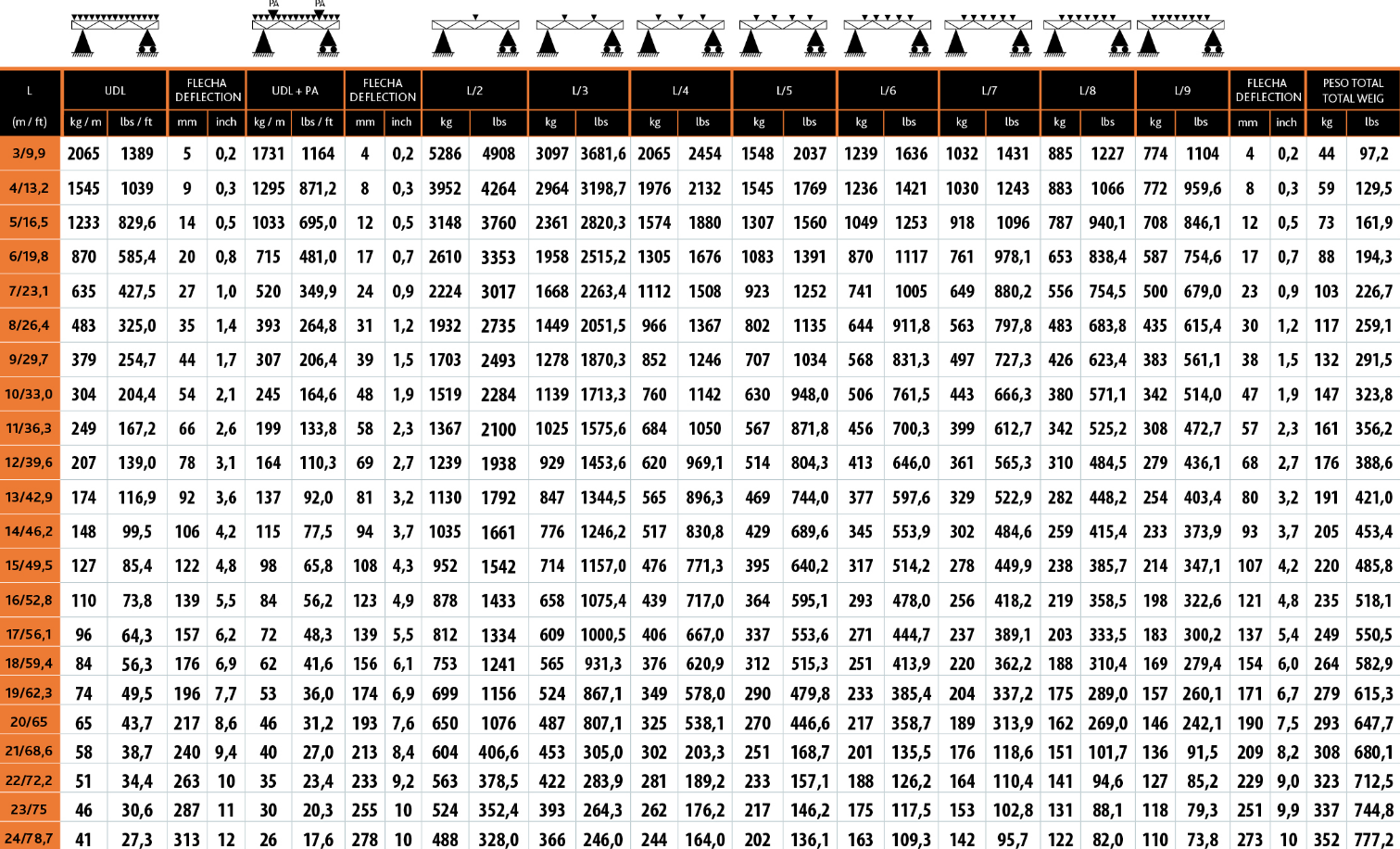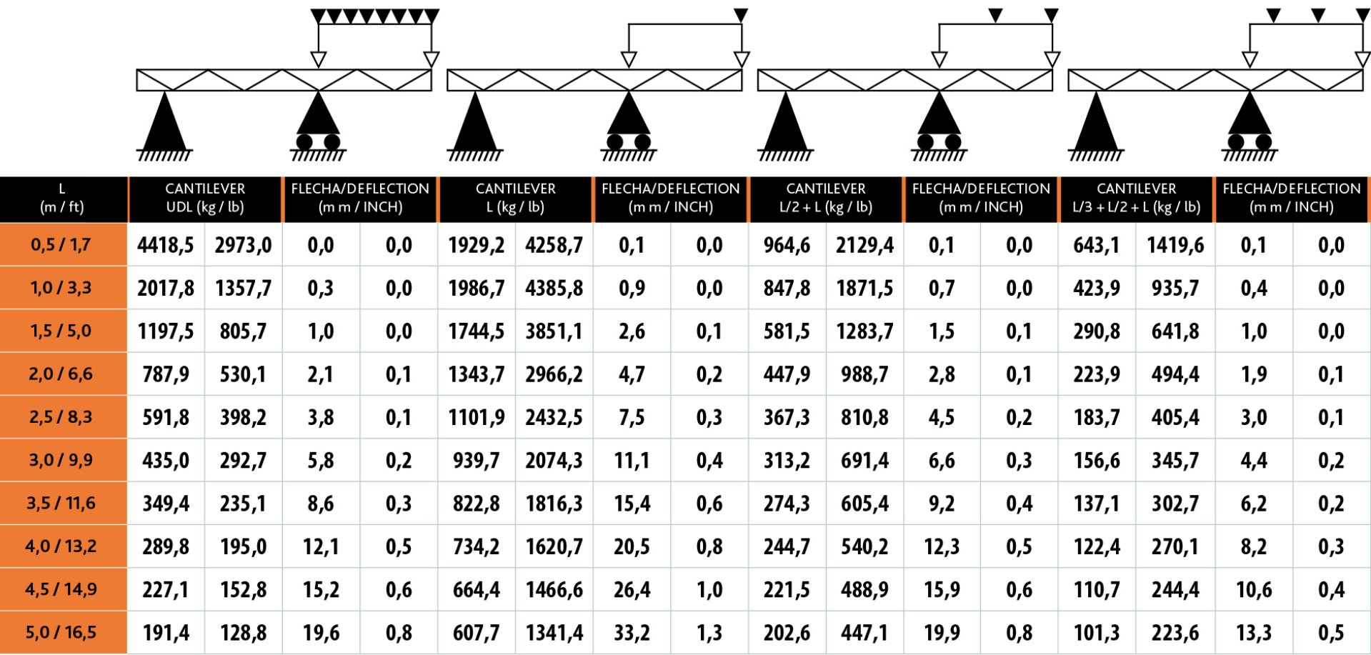 Square truss section with a side length of 52 cm (53 cm from female to female), made with a main tube 50 mm in diameter and 4 mm thick, and a secondary tube 30 mm in diameter and 3 mm thick. Particularly suitable for assemblies with high load requirements. CBC60 conical connection system (oversized). Available in different sizes. Includes 4 double cones, 4 pins, 4 threaded pins and 4 ‘R’ safety clips. Compatible with the FK SERIES.