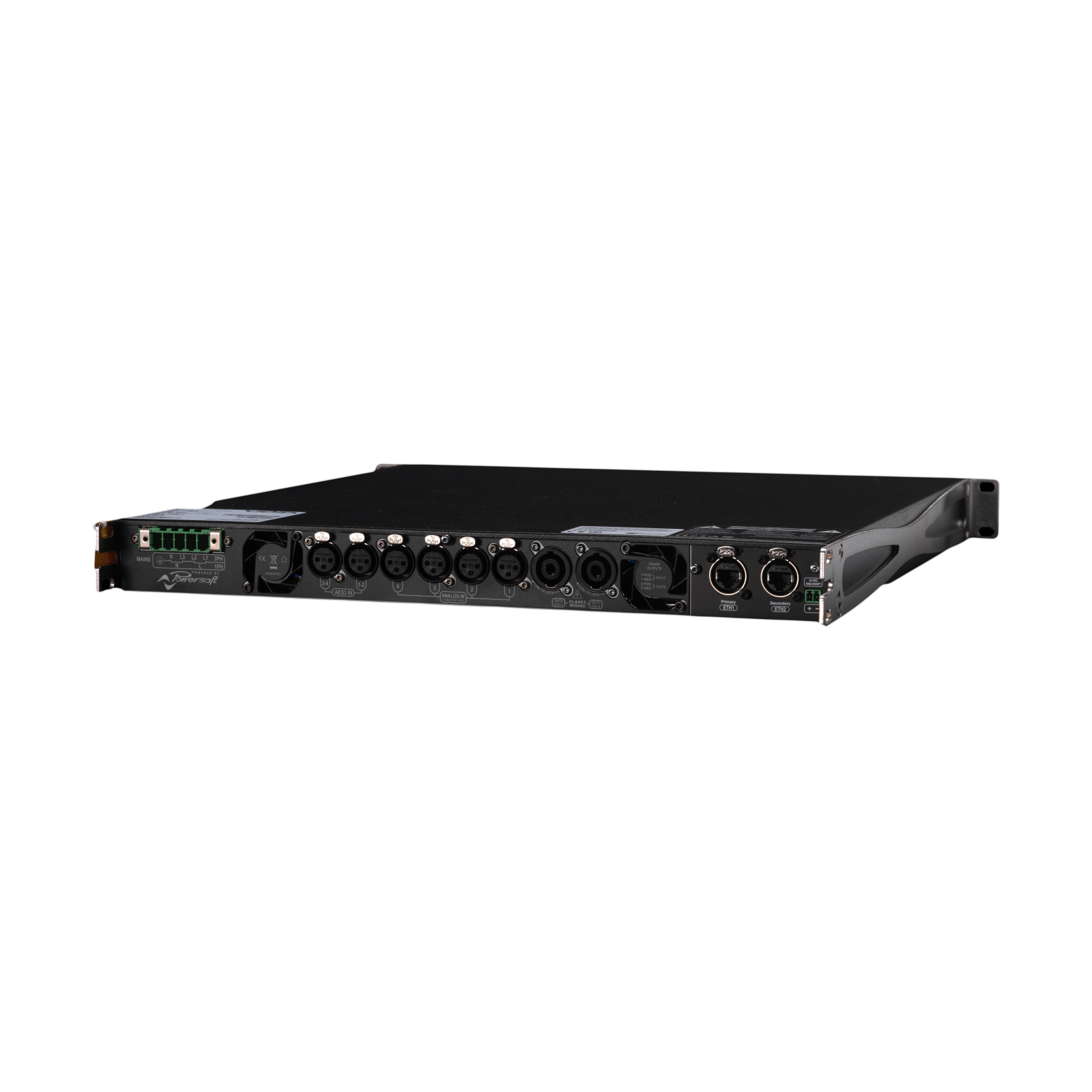 Thanks to its analog and AES3 digital inputs on each channel and the ability to set automatic signal backup policies, the Q5 ensures operational continuity even in case of input failure. The high-grade integrated DSP, fully managed via Armonía Pro Audio Suite™, enables comprehensive processing including FIR/IIR EQ, raised-cosine filters, multiple limiters (peak, RMS voltage/current, TruePower™), advanced delay and signal loss compensation over speaker cables using Active DampingControl™.