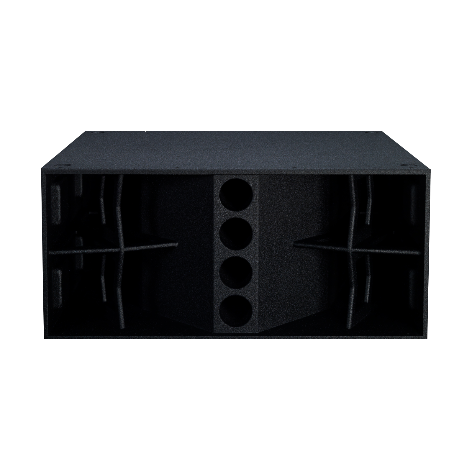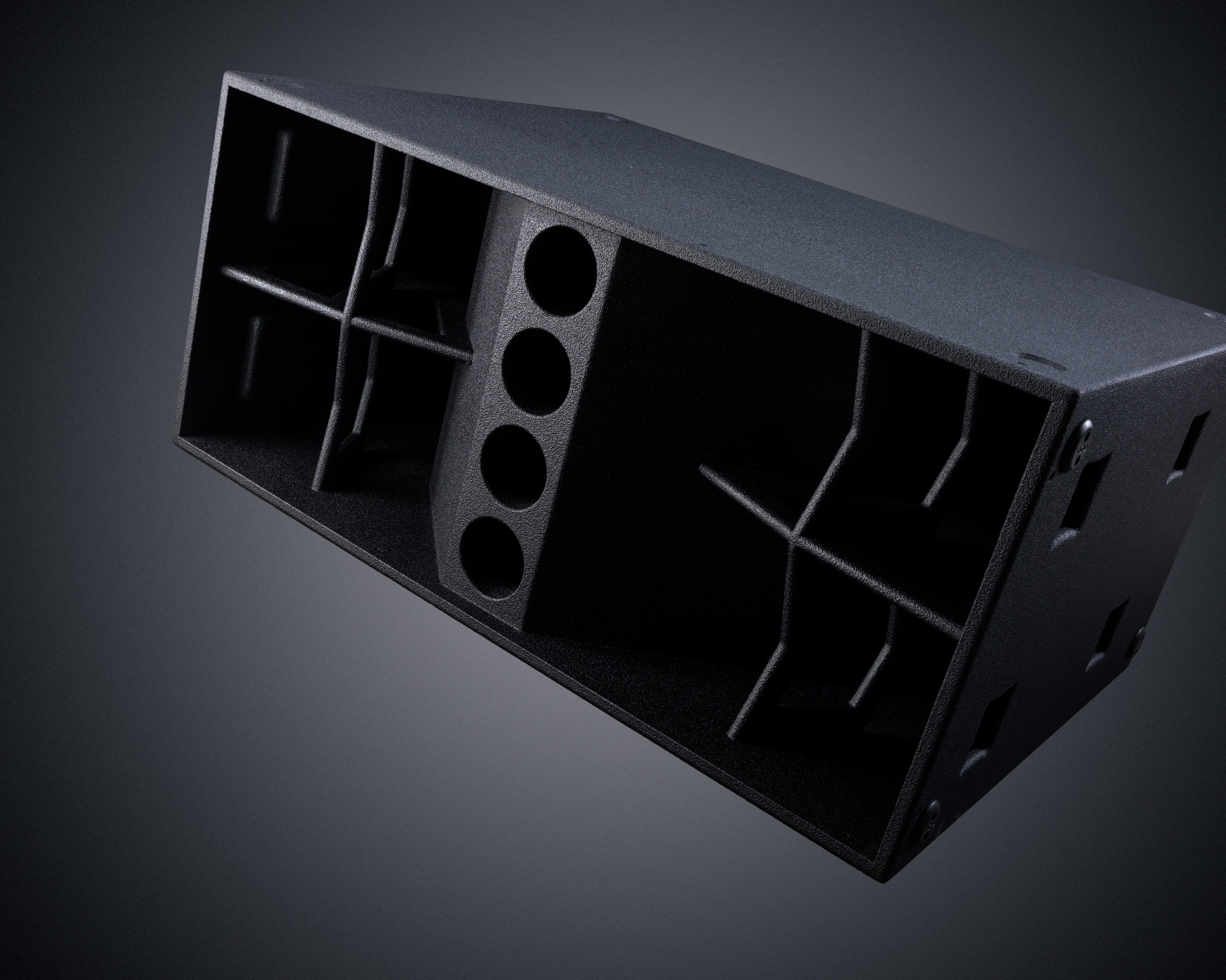 The Stasys XV2 is a dual 18” horn-loaded subwoofer built for high-impact, large-scale touring environments, delivering exceptional low-end extension and control. Through a complete redesign of its internal resonant chambers, airflow is optimized to achieve highly efficient passive cooling, eliminating the need for external heatsinks and minimizing power compression.